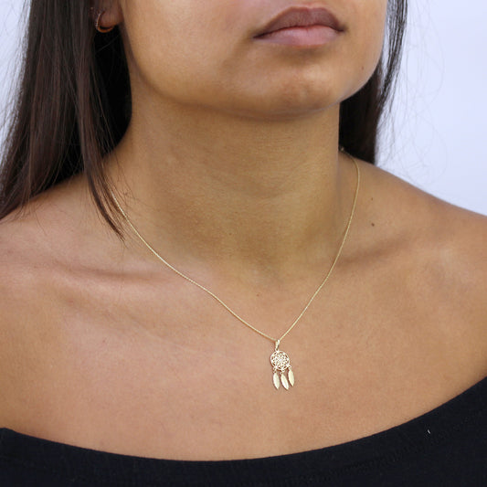 Normaler PreisHalskette mit Anhänger aus 9 Karat Gold und klarem Zirkonia-Traumfänger, 16–20 Zoll