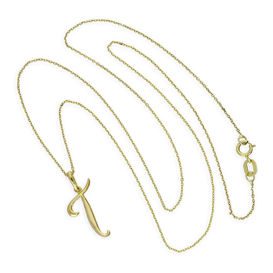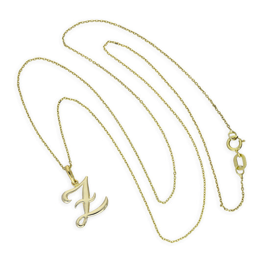 Normaler PreisHalskette mit Anhänger aus 9 Karat Gold mit ausgefallener Kalligraphie-Schriftzug-Buchstabe K, 16–20 Zoll