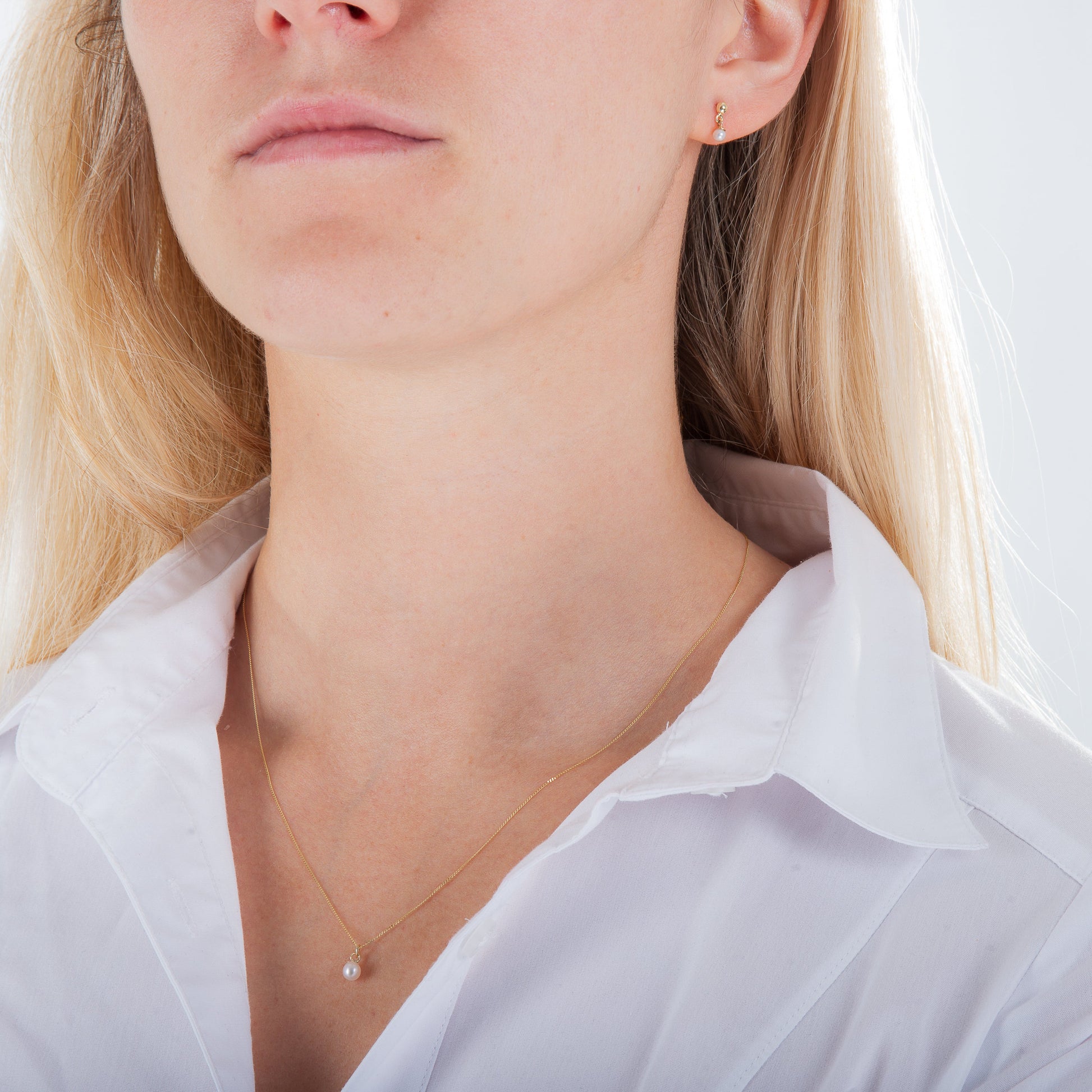 Halskette aus 9 Karat Gold mit 4 mm großen weißen Süßwasserperlen – 16–20 Zoll