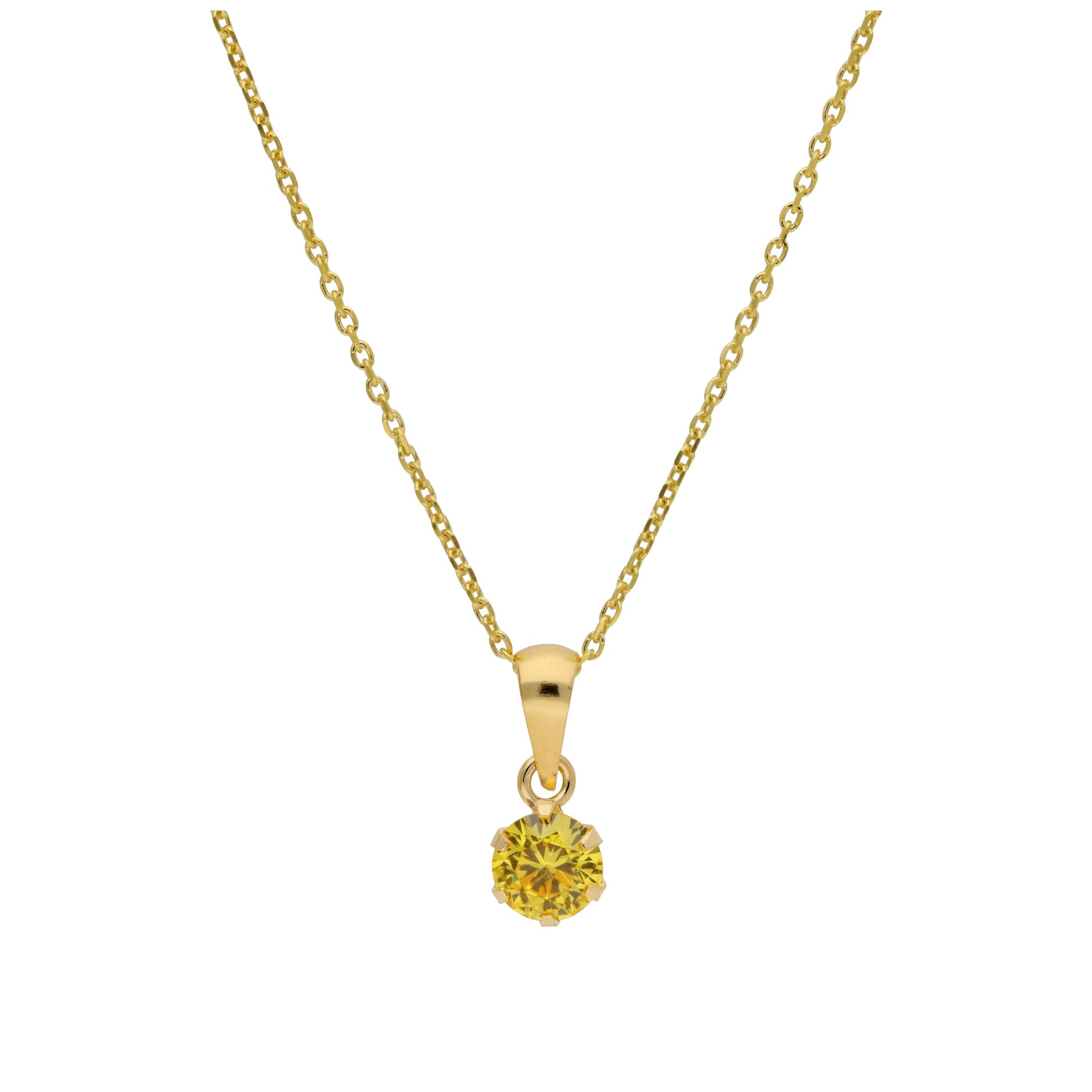 Halskette aus 9 Karat Gold mit 5 mm rundem Citrin CZ in Krappenfassung, 16-20 Zoll