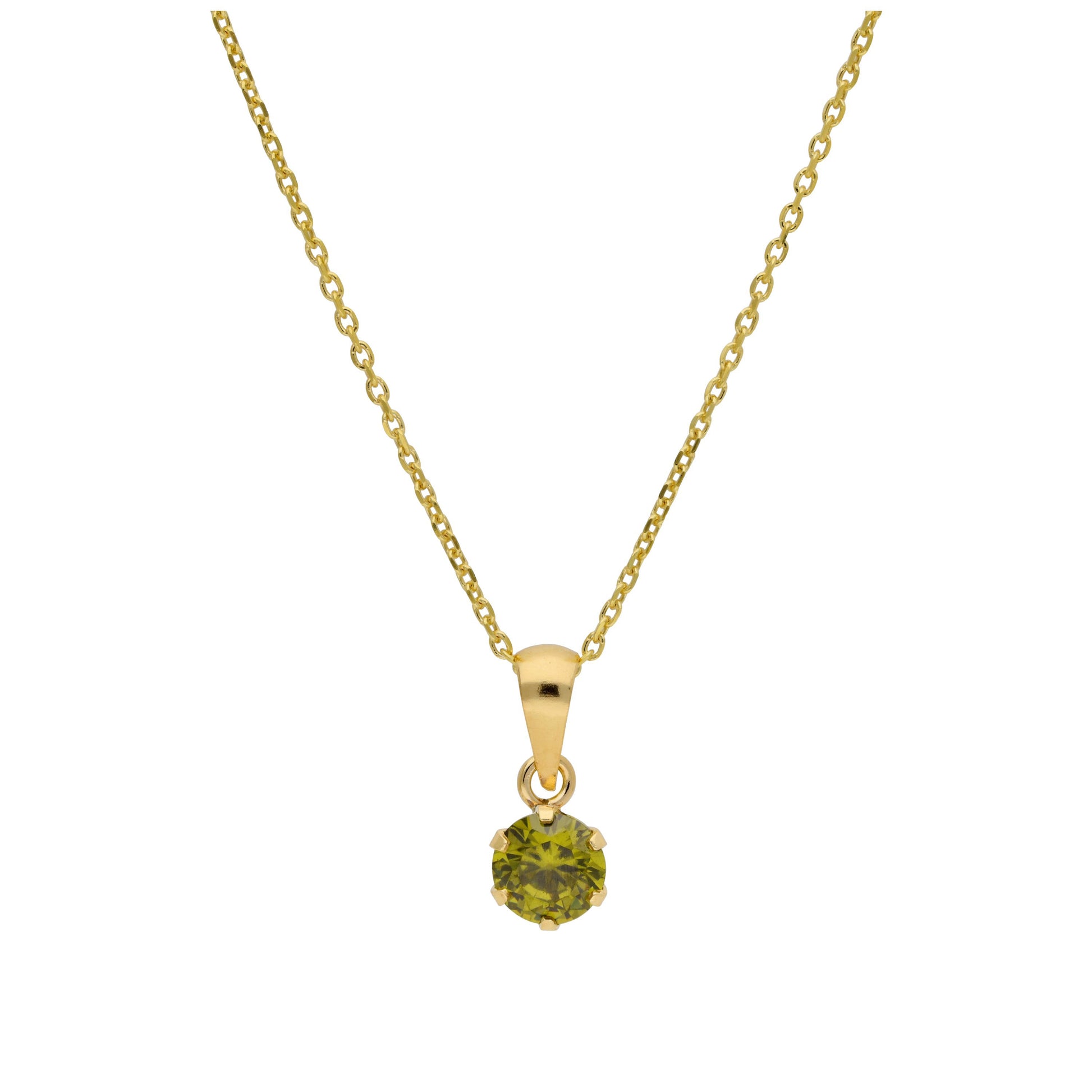 Halskette aus 9 Karat Gold mit 5 mm runden CZ-Steinen in Peridot, 16–20 Zoll