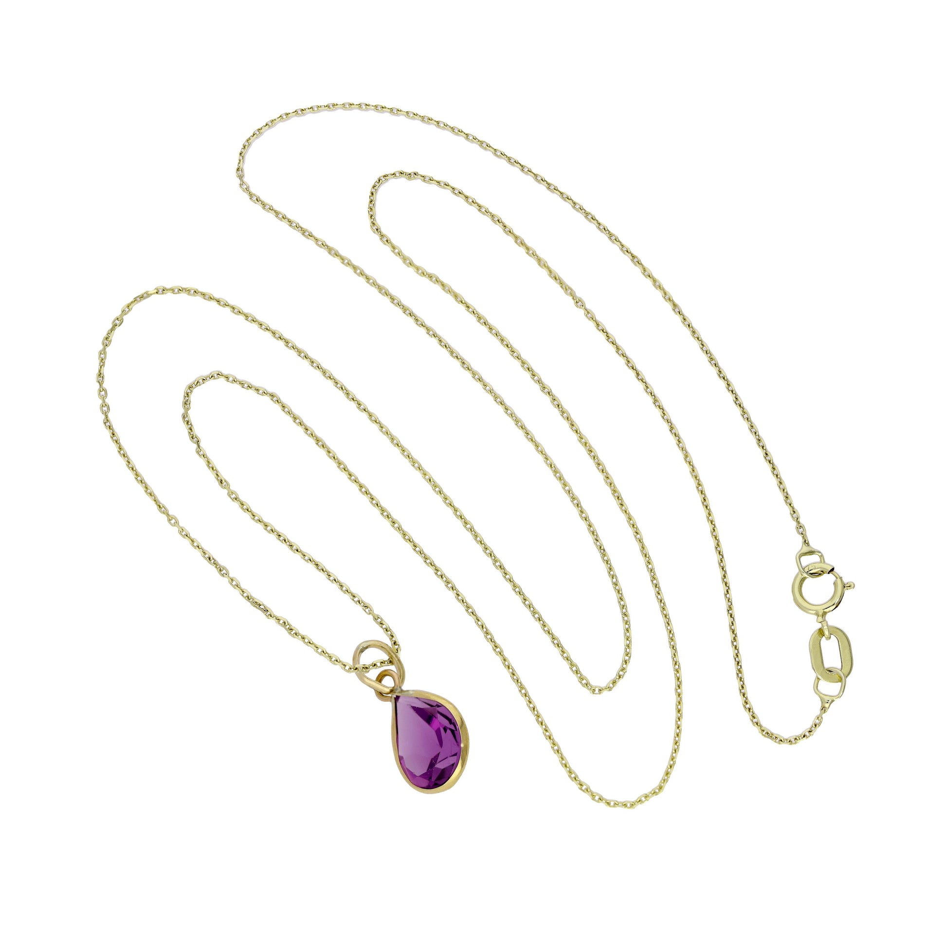 Halskette mit tropfenförmigem Anhänger aus 9 Karat Gold und Amethyst-CZ-Kristall, 16–20 Zoll