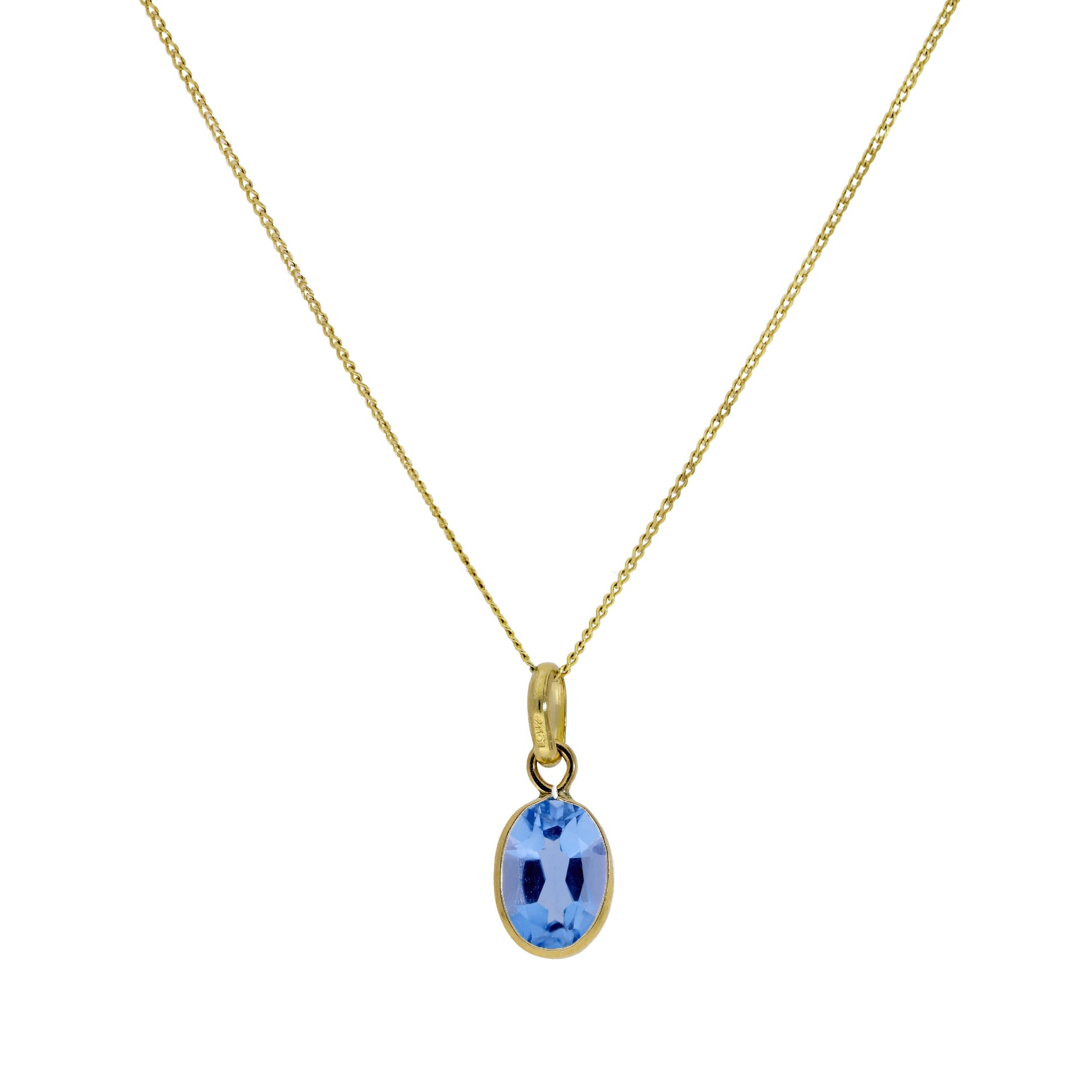 Halskette mit ovalem Anhänger aus 9 Karat Gold und Aquamarin-CZ, 40–50 cm