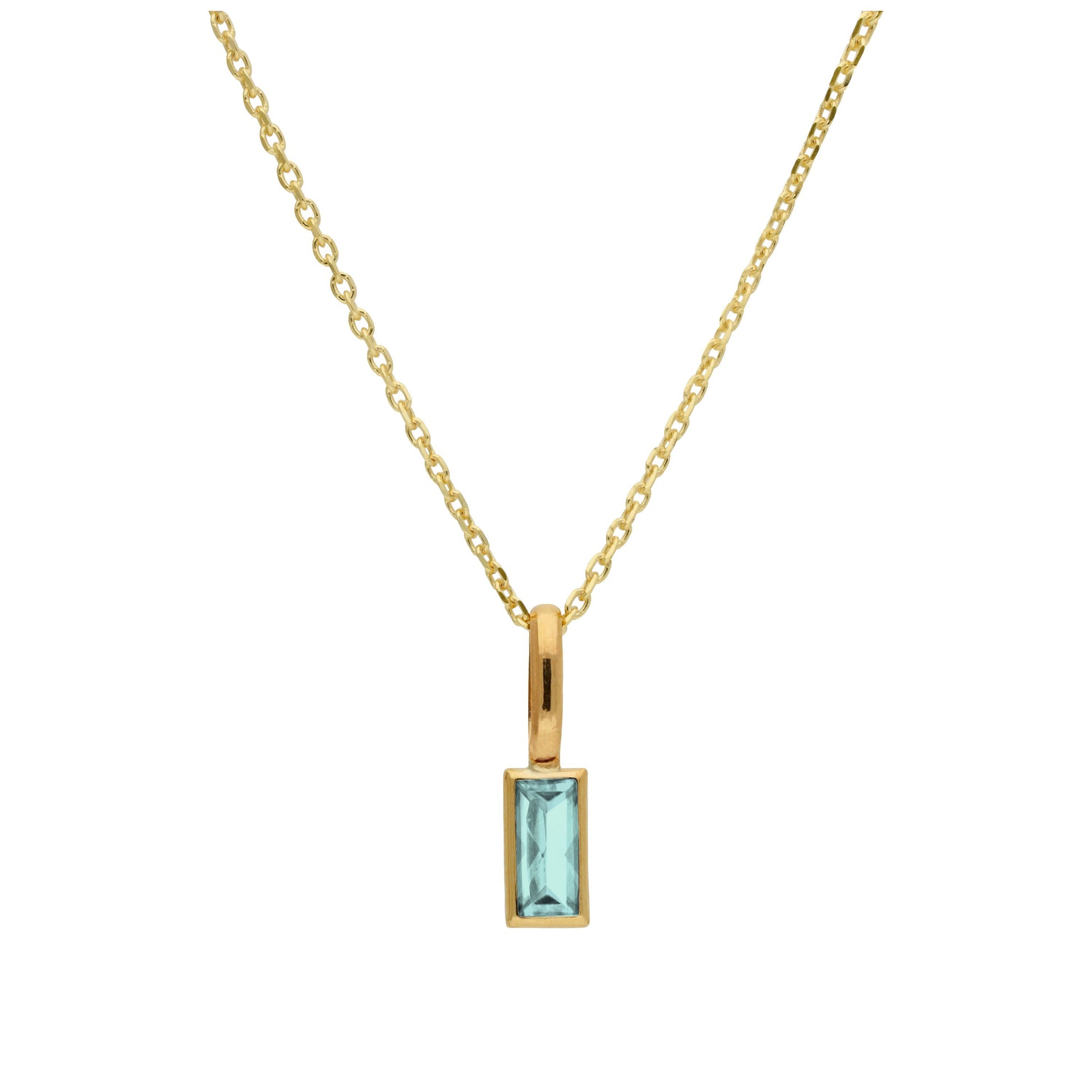Halskette aus 9 Karat Gold mit Baguette-Aquamarin und CZ, 16–20 Zoll