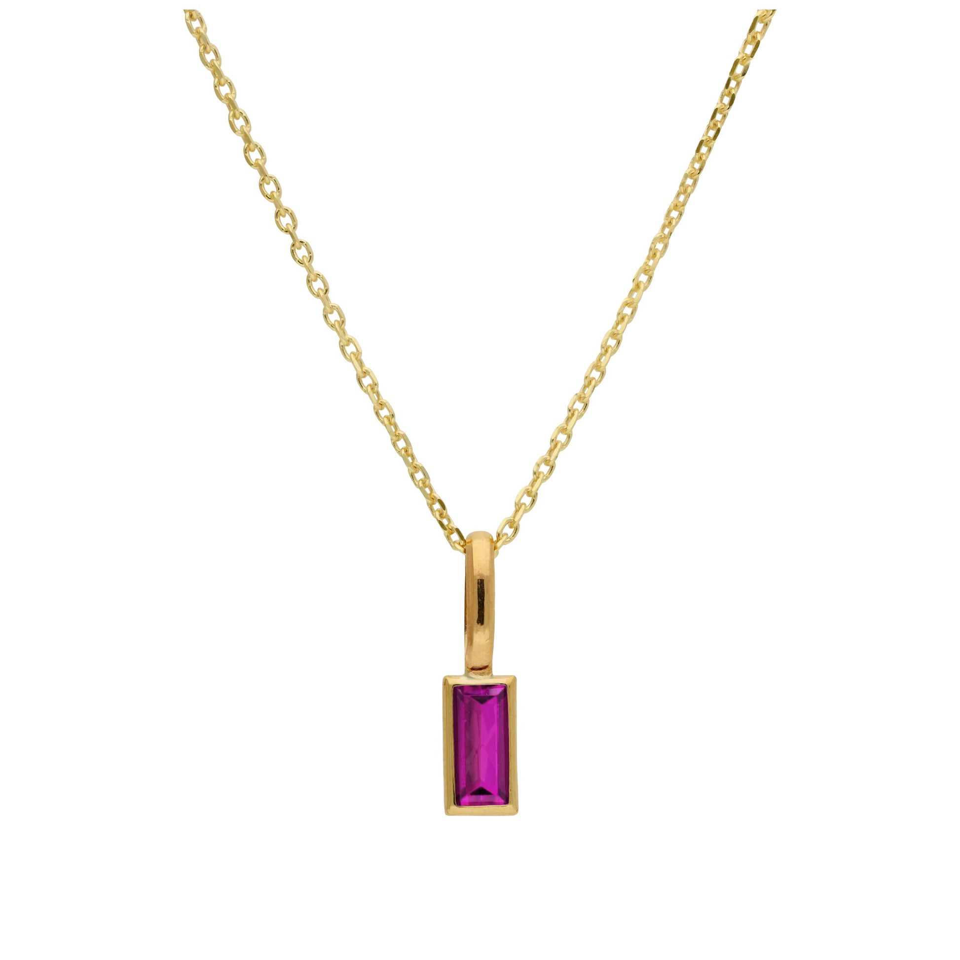 9-karätige Goldkette mit Baguette-Rubin-CZ 16–20 Zoll