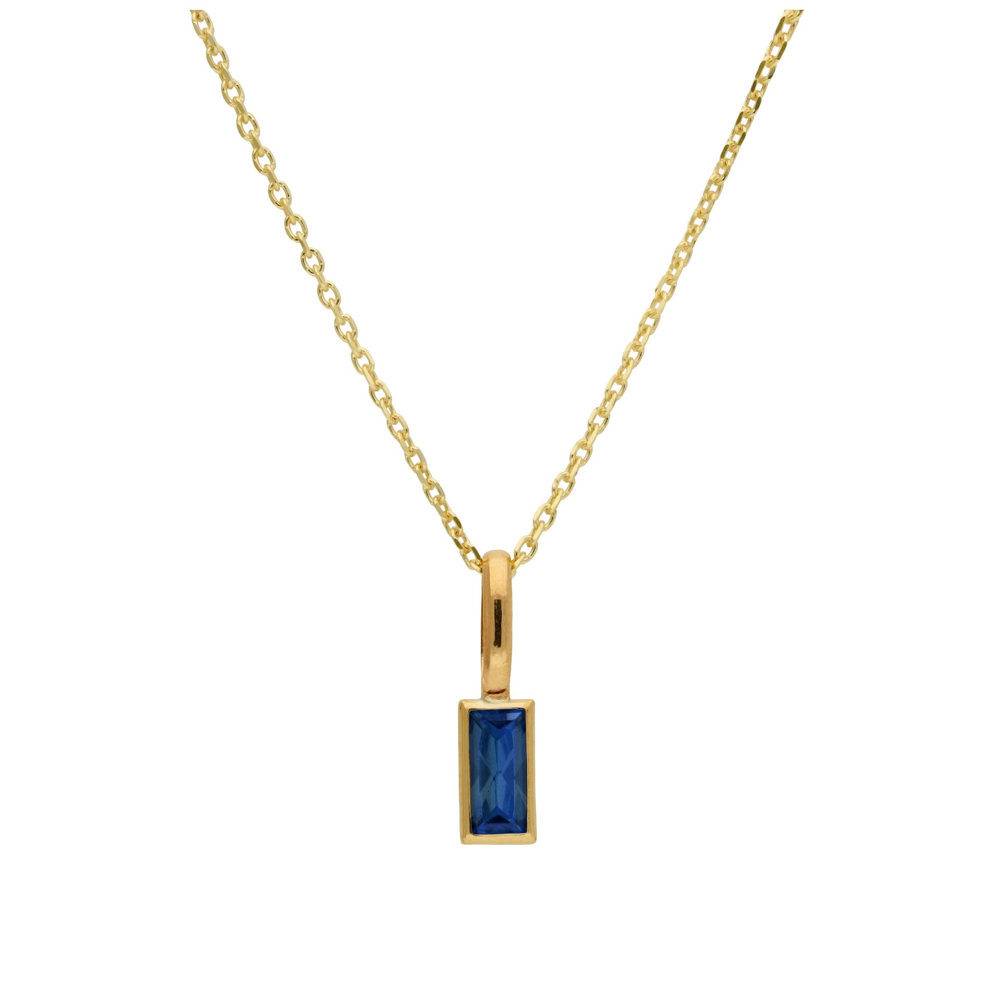 Halskette aus 9 Karat Gold mit Baguette-Saphir und CZ, 16–20 Zoll