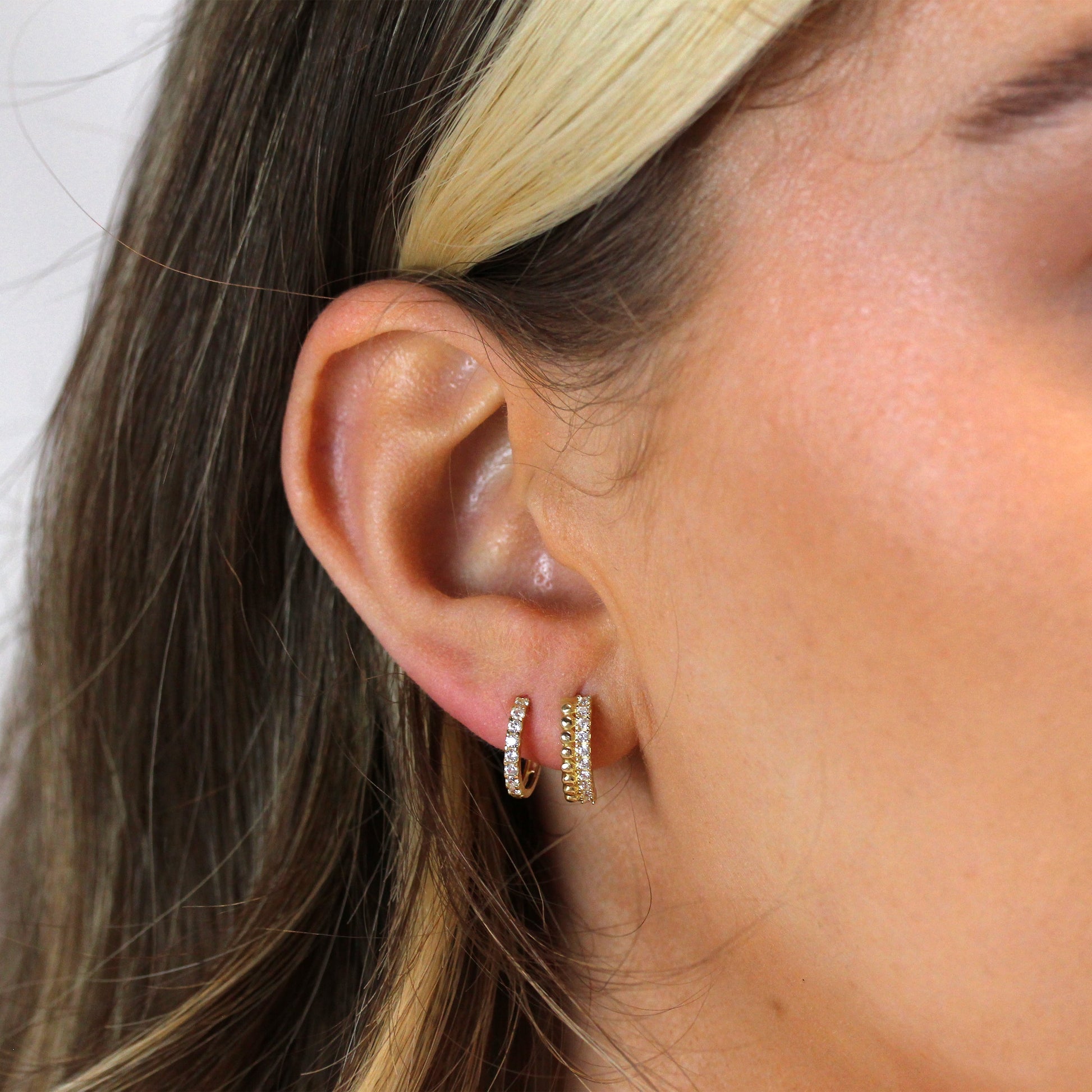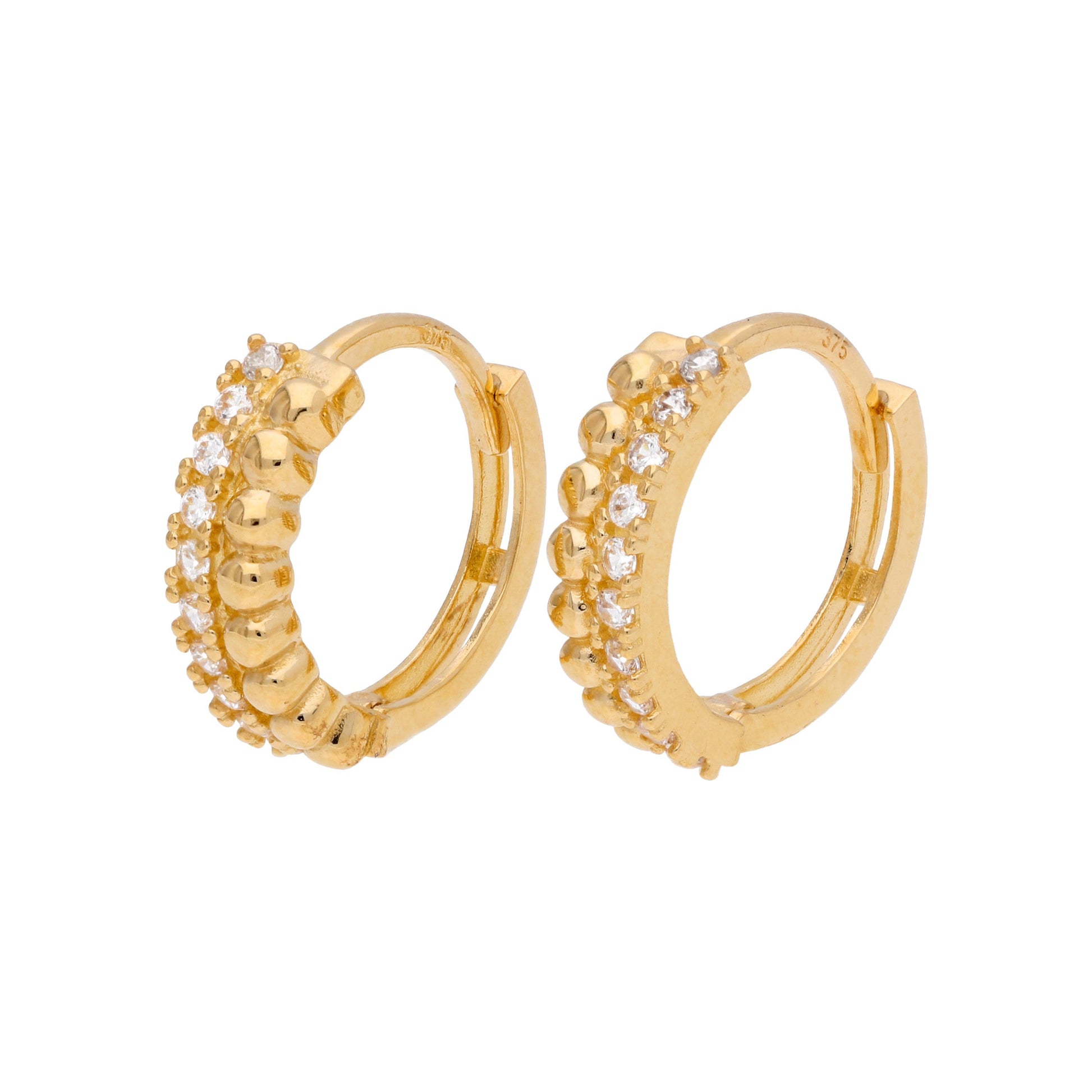 9 Karat Gold Pompon Kügelchen Pavé Fassung CZ 13mm Klappcreolen Ohrringe