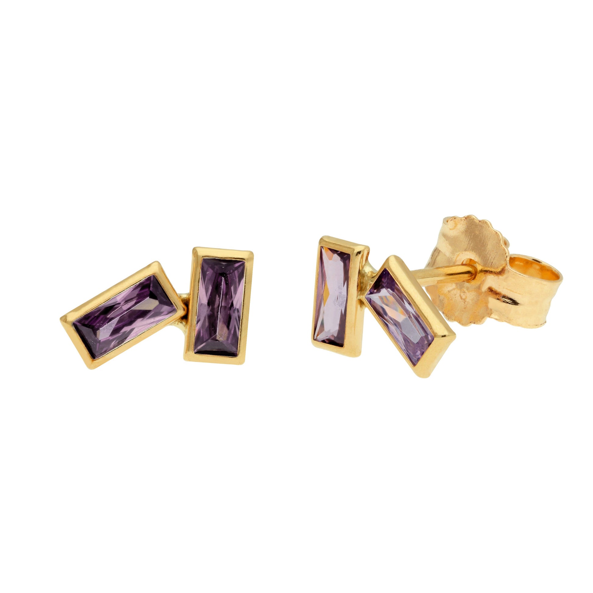 9ct Gold Geburtsstein CZ Doppel-Baguette-Ohrstecker