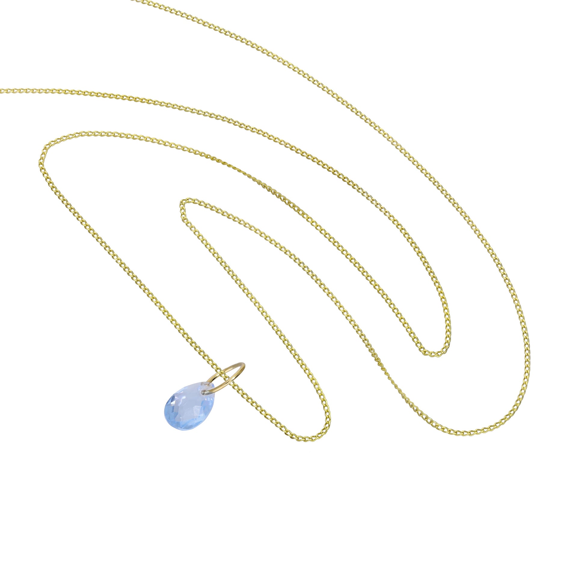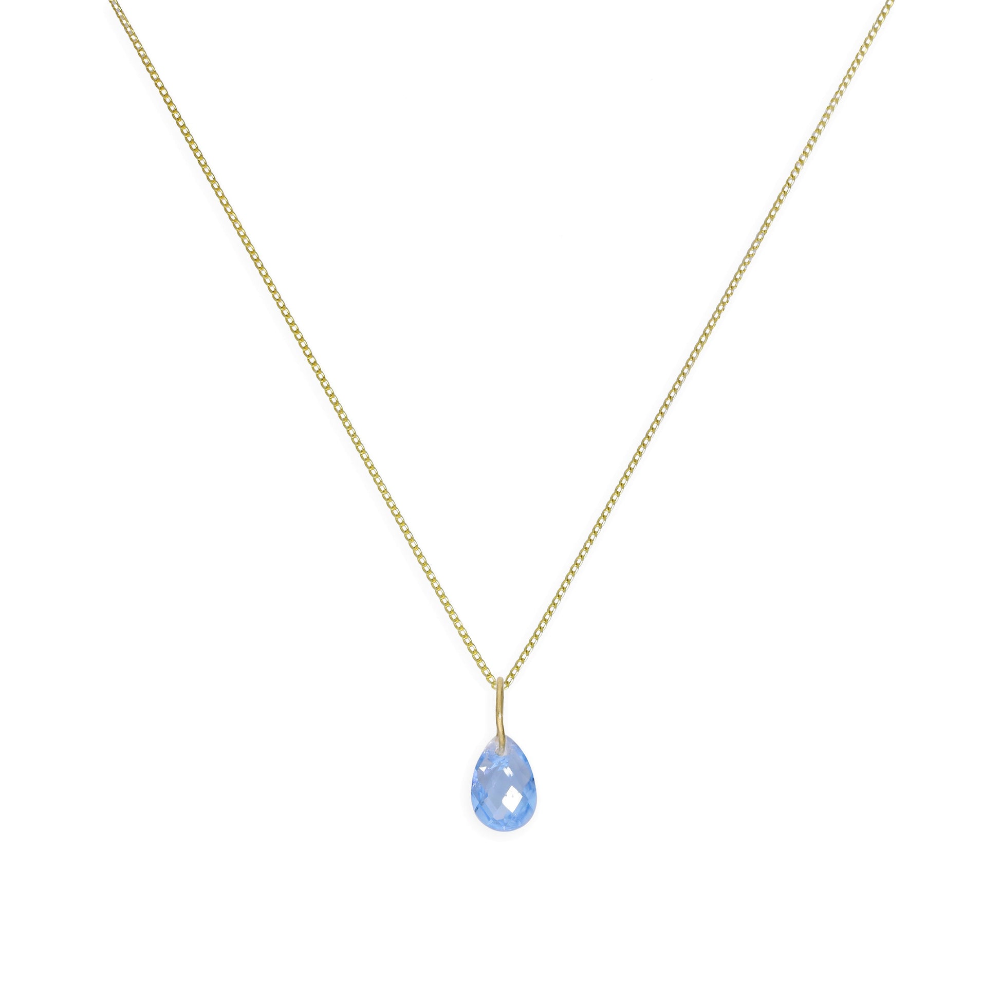 Halskette mit tropfenförmigem Anhänger aus 9 Karat Gold und blauem Emaille, 40–50 cm