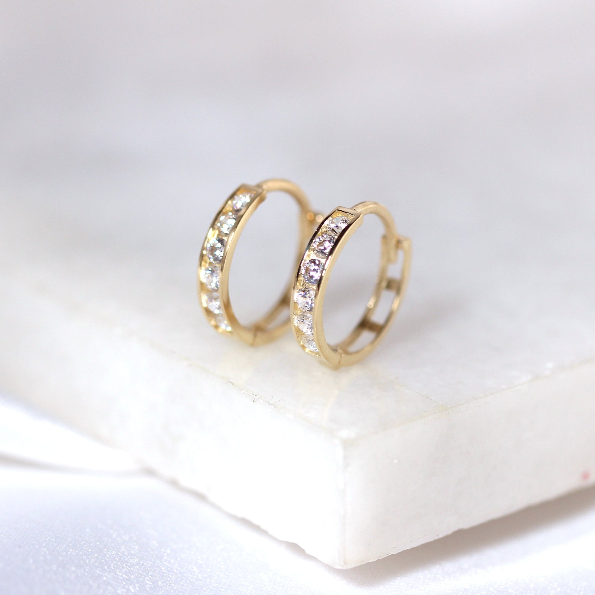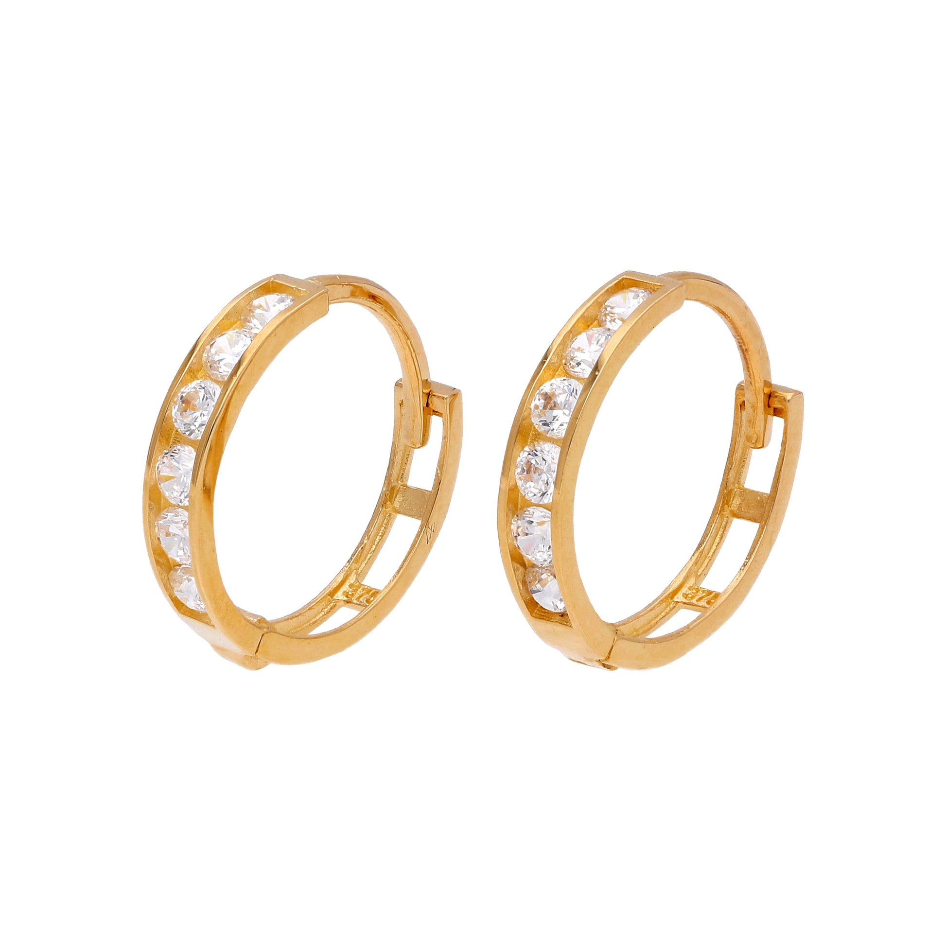 9 Karat Gold Kanal Fassung CZ 12mm Klappcreolen Ohrringe