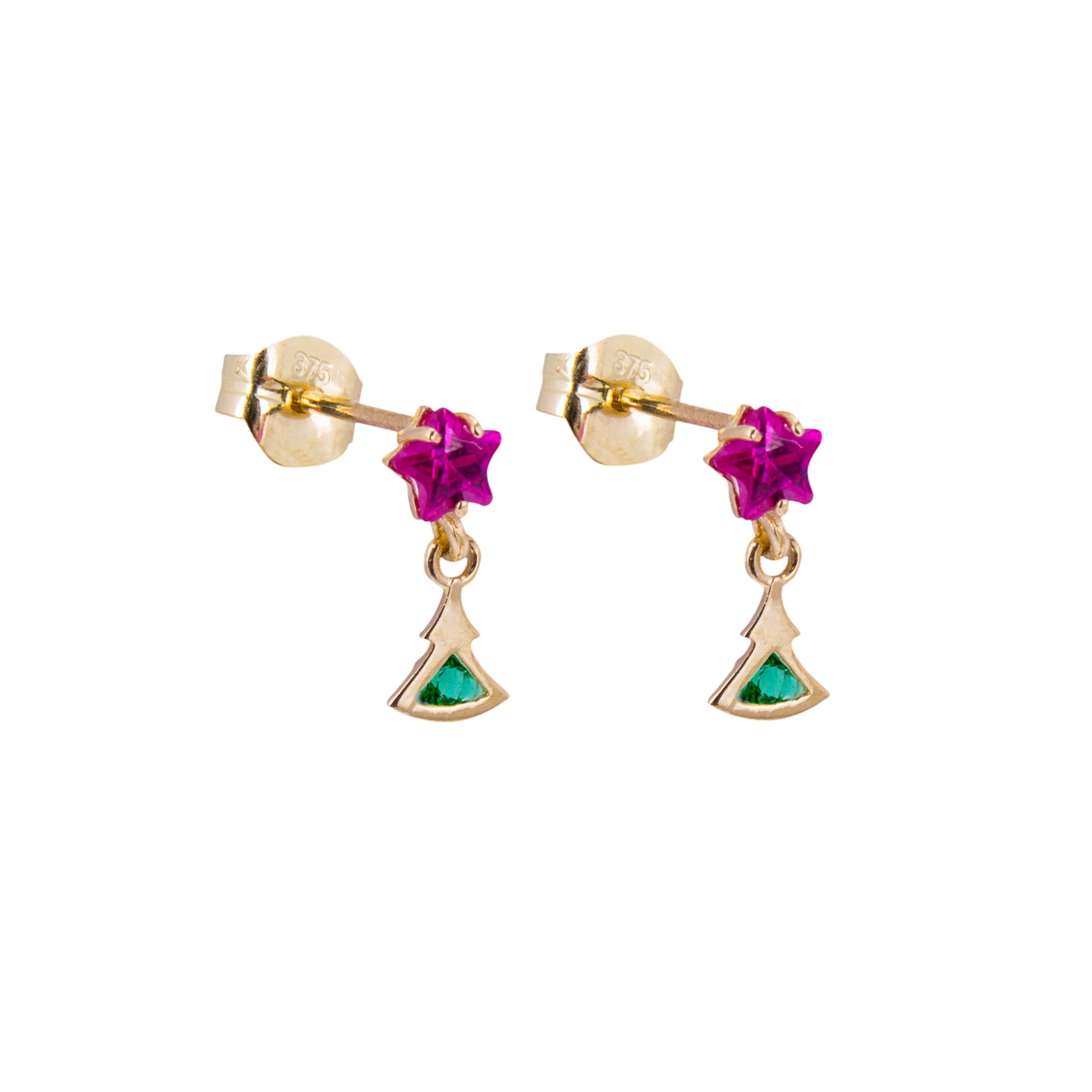 9 Karat Gold Weihnachtsbaum Smaragdgrün Rubinfot Stern CZ Kristall Hänge Ohrstecker