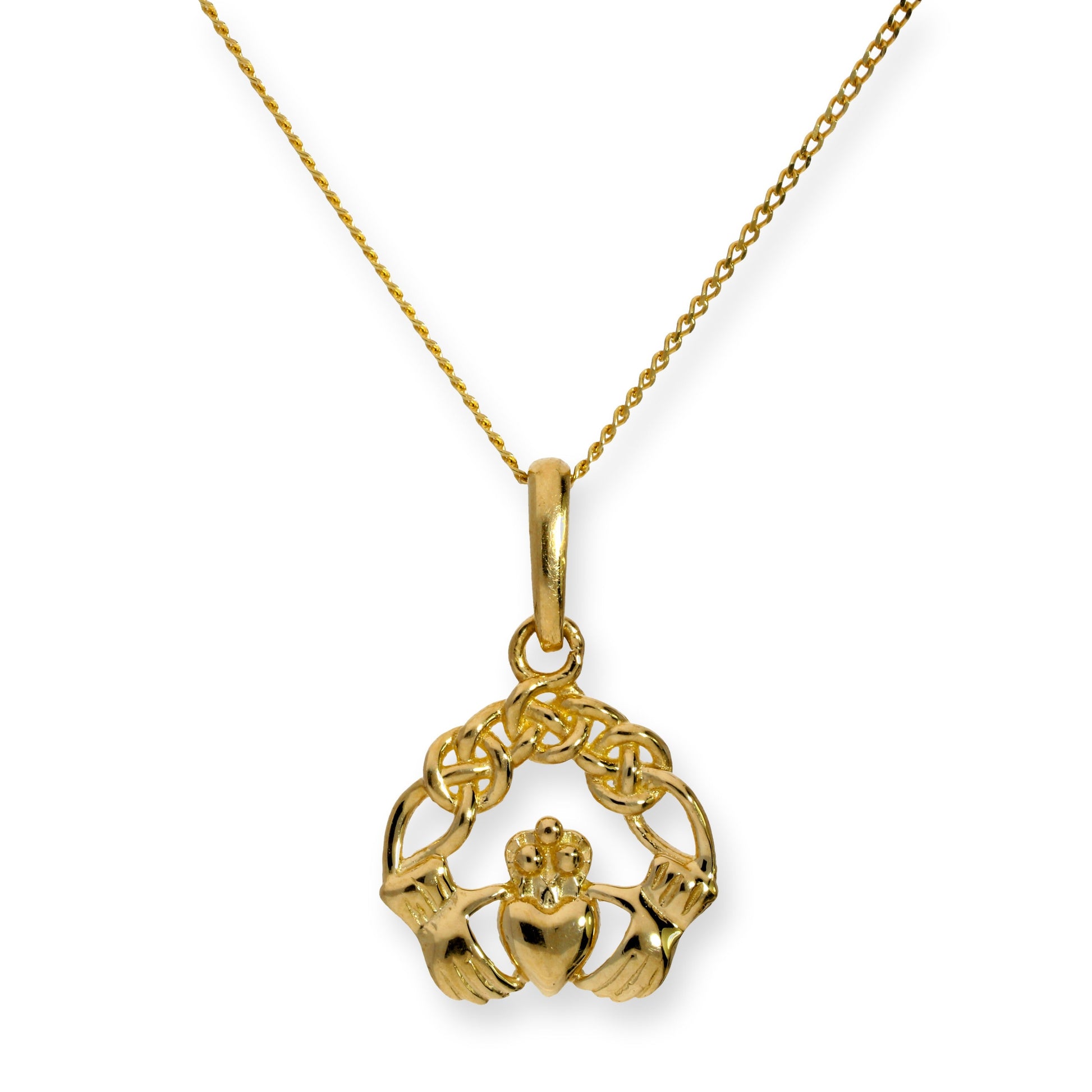9 Karat Gold-Claddagh-Anhänger, Halskette 16–20 Zoll