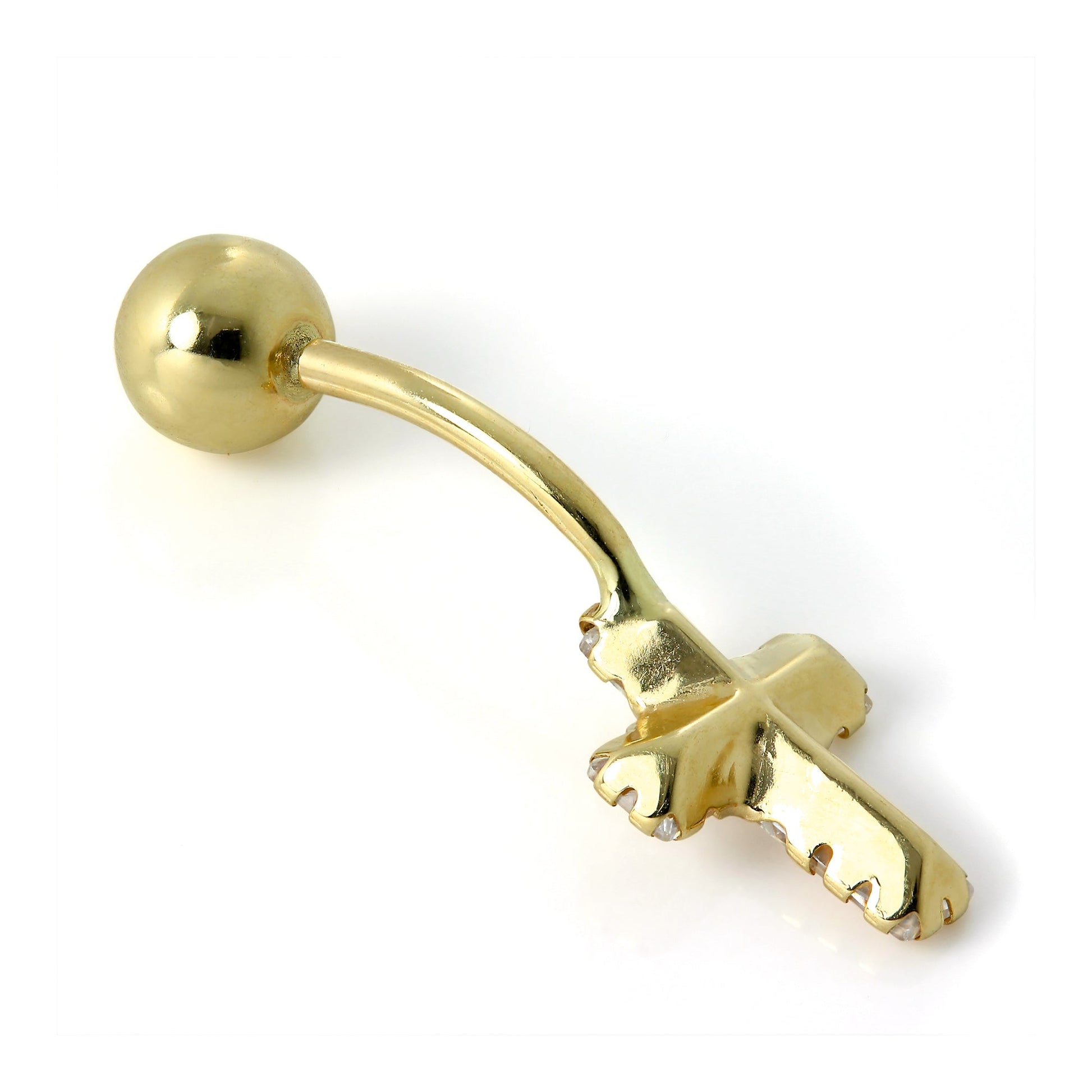 9 Karat Gold Klar CZ Kristall Kreuz Bauchnabelstange