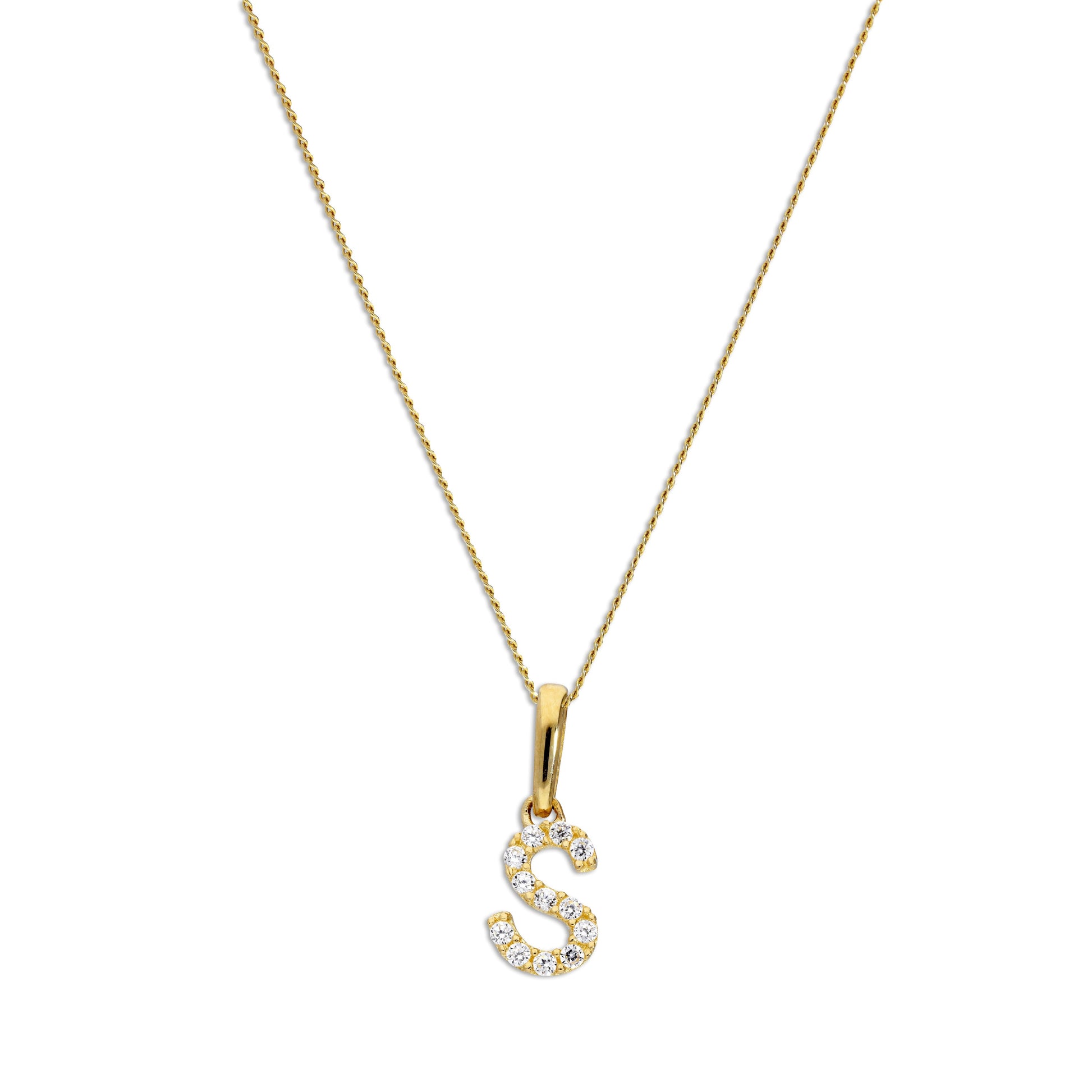9 Karat Gold & Klar CZ Kristall Hängend Schrift Alphabet Buchstabe S Anhänger an 40,5 - 51cm Kette