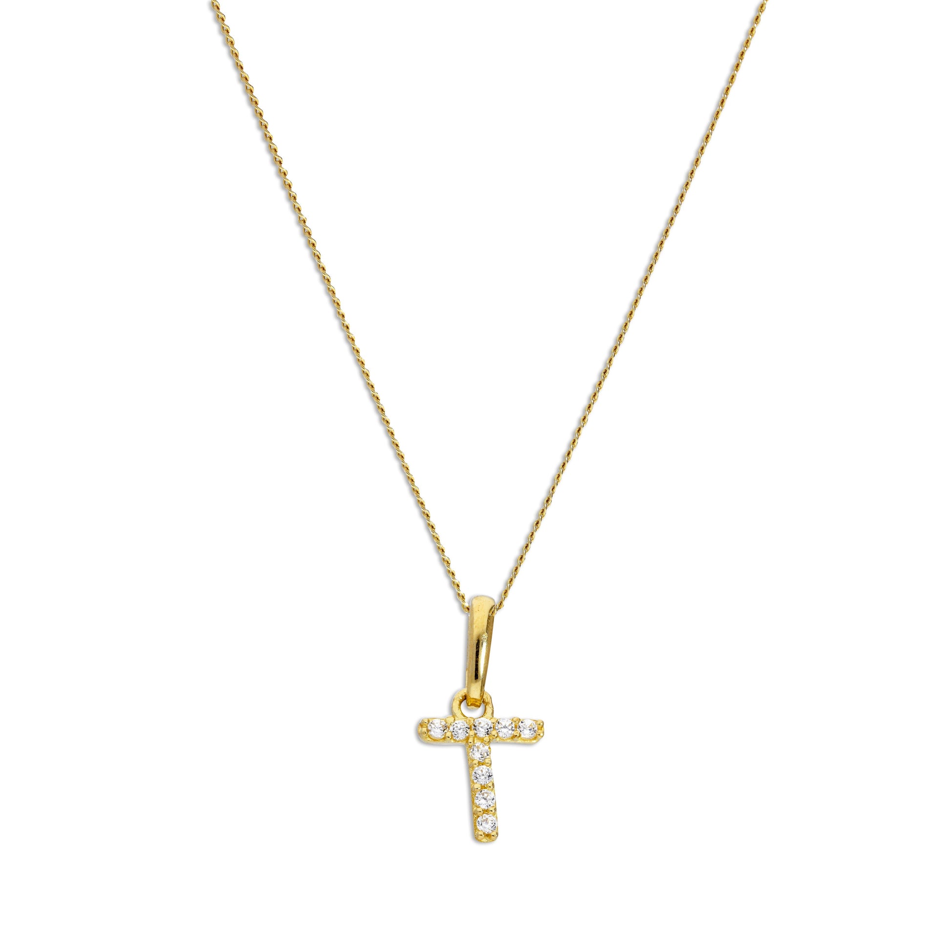 9 Karat Gold & Klar CZ Kristall Hängend Schrift Alphabet Buchstabe T Anhänger an 40,5 - 51cm Kette