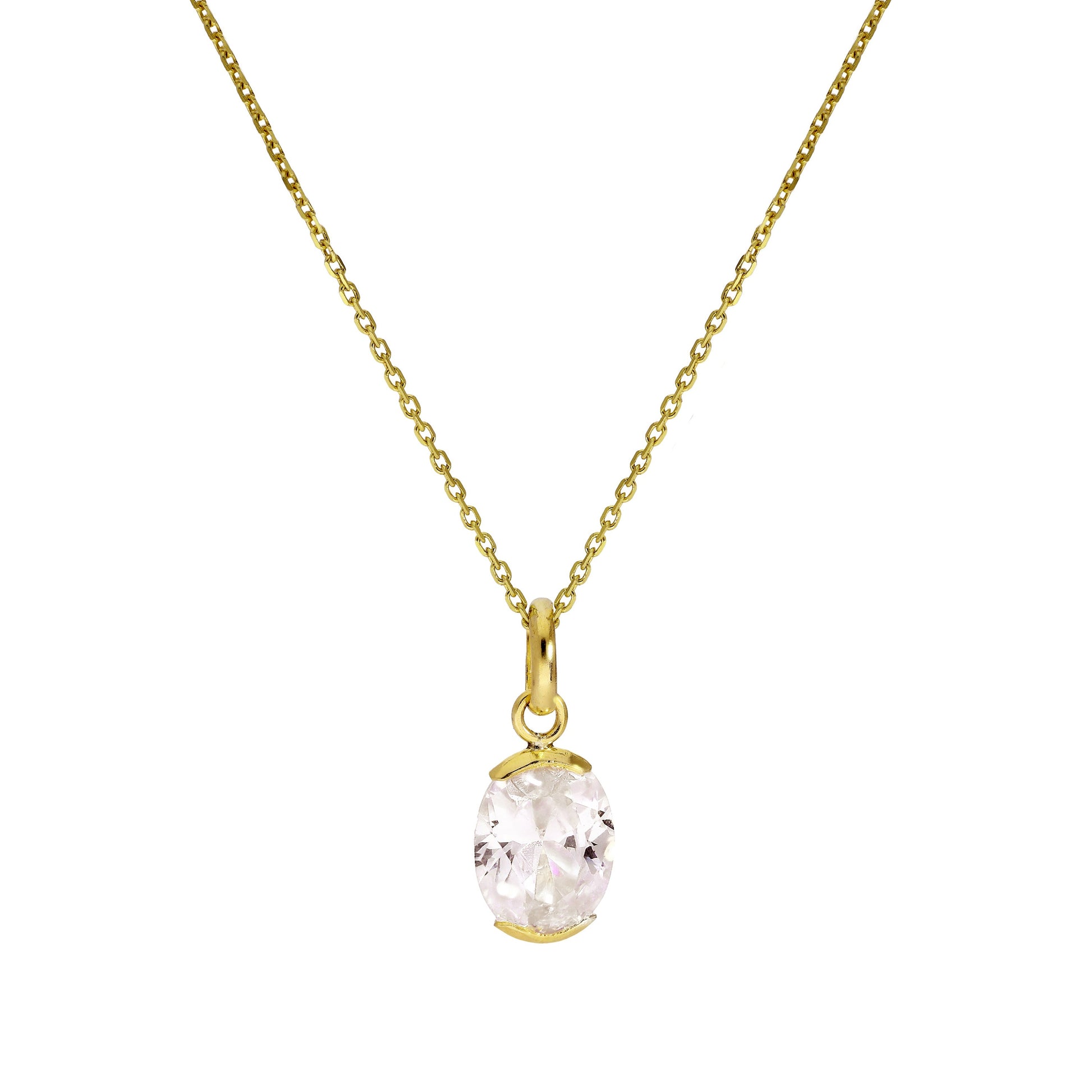 9 Karat Gold- und klarer CZ-Kristall-Ovalanhänger-Halskette, 16–20 Zoll
