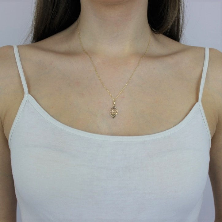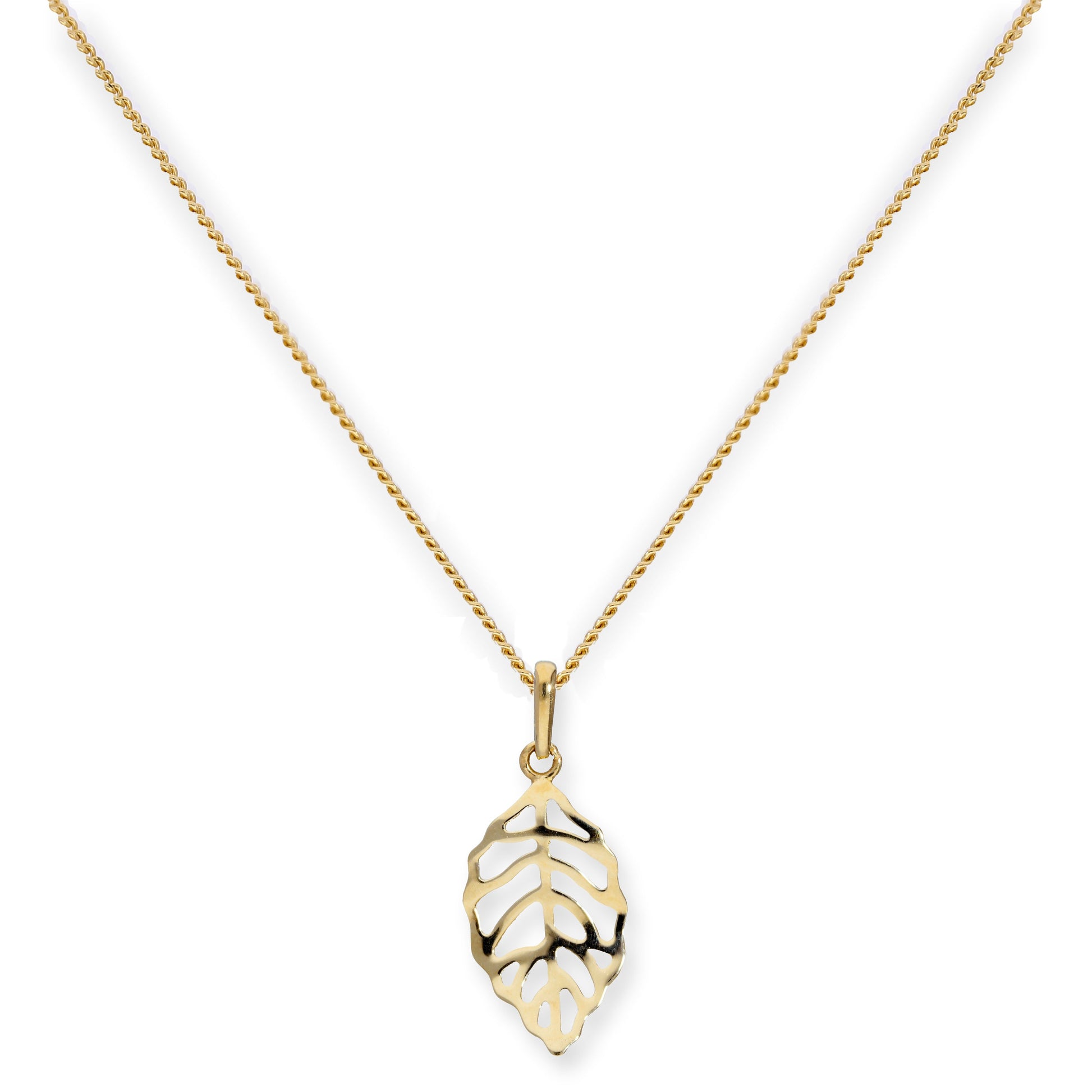 Halskette mit ausgeschnittenem Blattanhänger aus 9 Karat Gold 16–20 Zoll