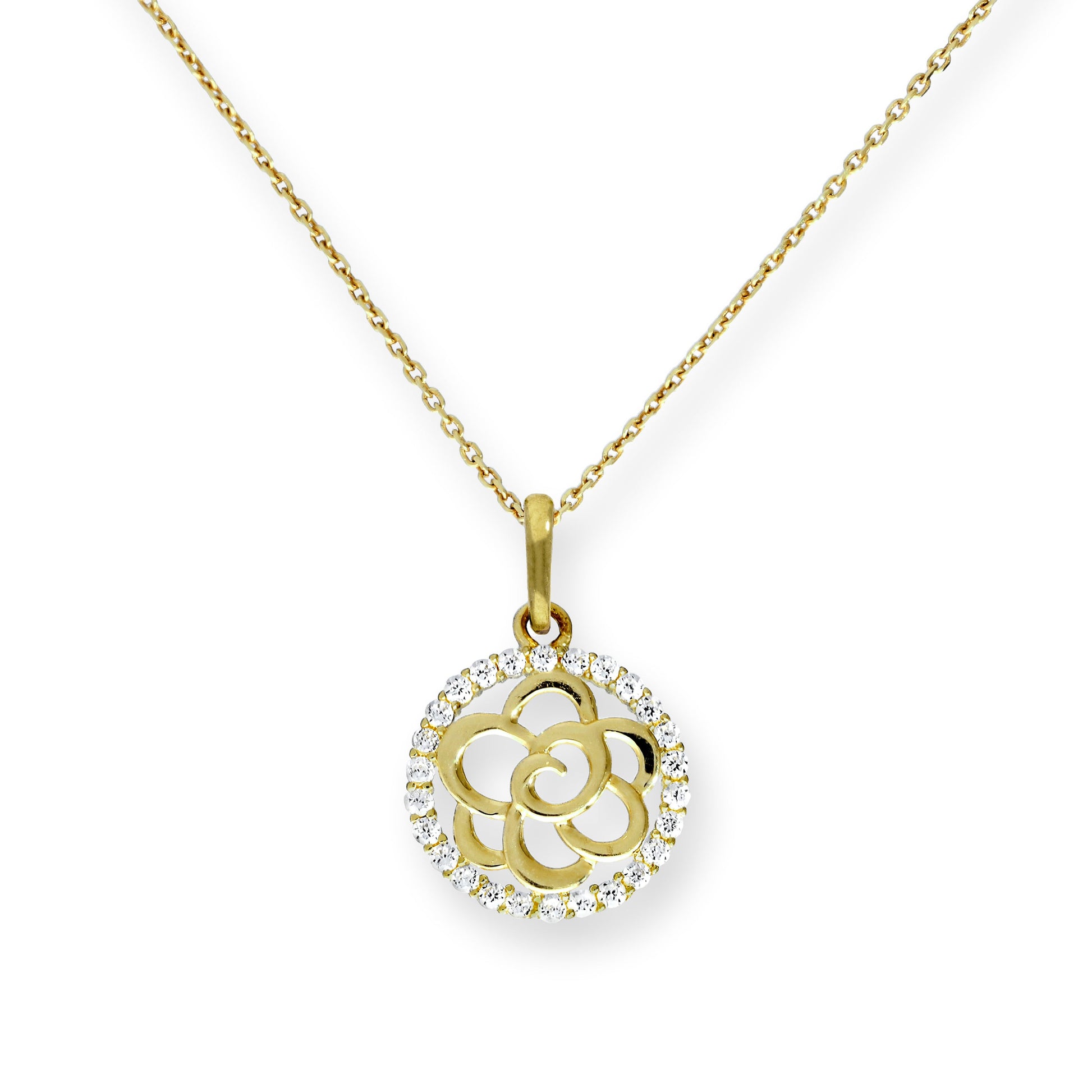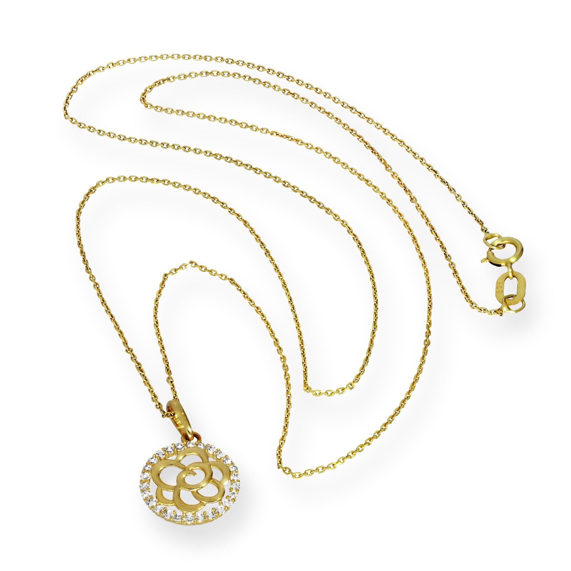 9 Karat Gold & CZ Kristall Offen Blume Anhänger Halskette 40,5 - 51cm