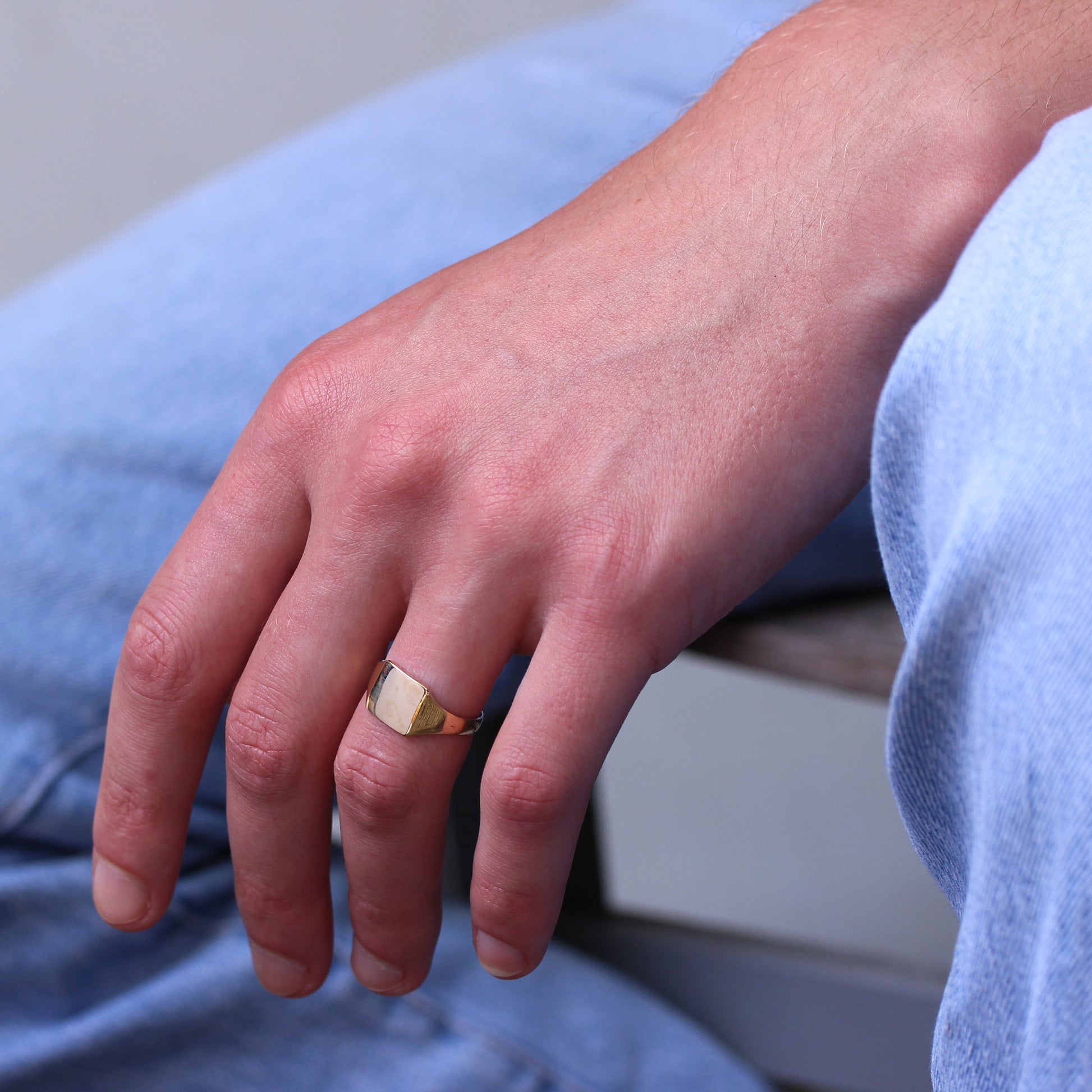 9 Karat Gold, gravierbar, Herren-Großes-Quadrat-Siegelring, Größe R–W