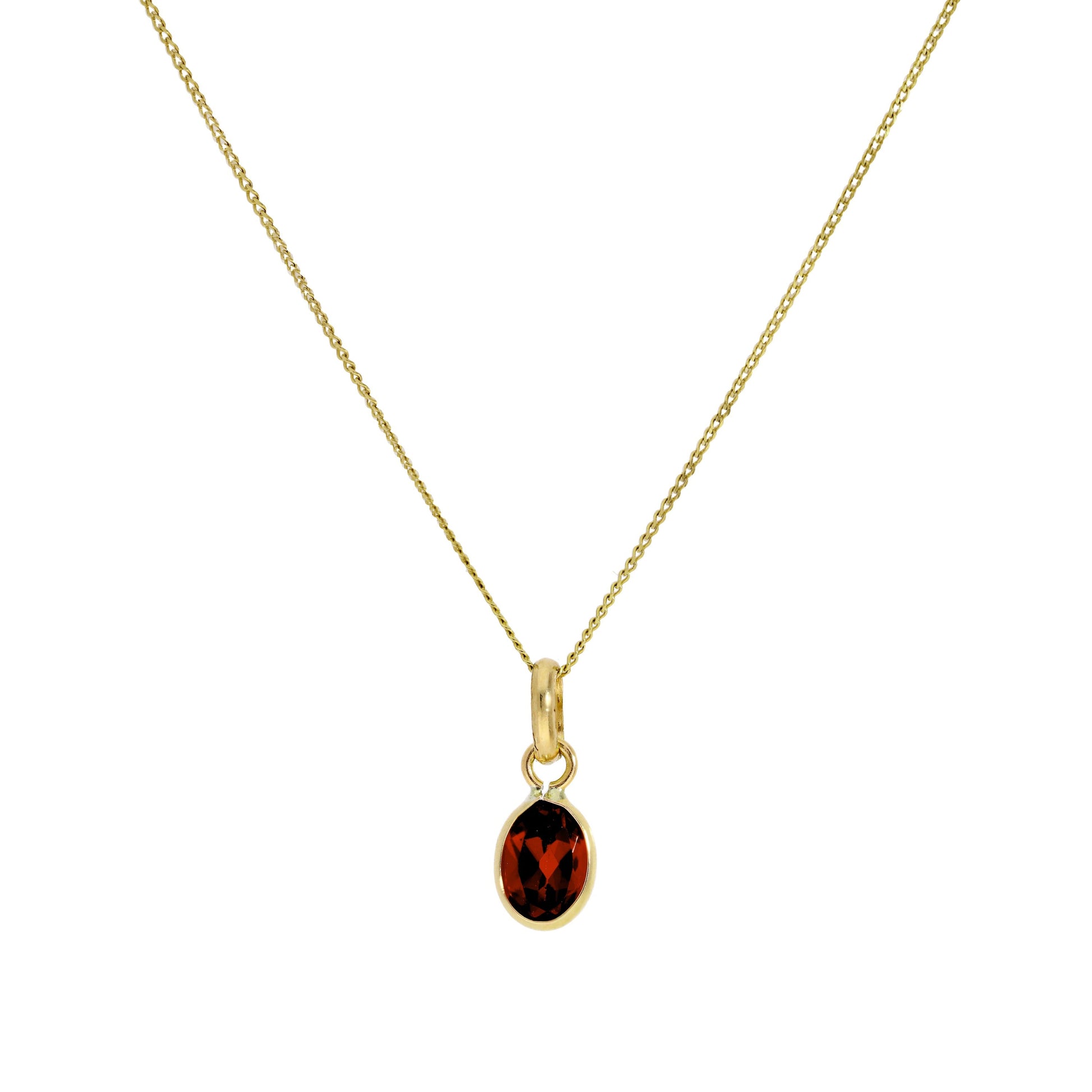 Halskette mit ovalem Anhänger aus 9 Karat Gold und Granat-CZ-Kristall, 40–50 cm
