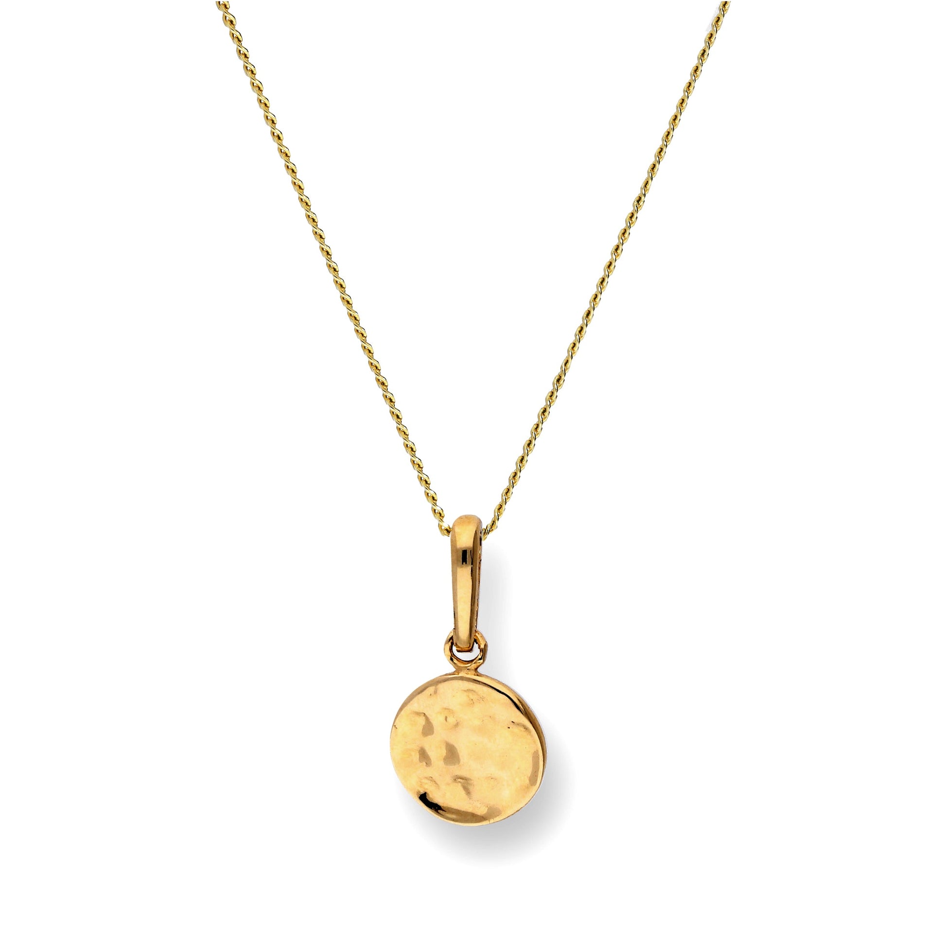 Halskette mit rundem Anhänger aus 9 Karat Gold mit gehämmerter Oberfläche