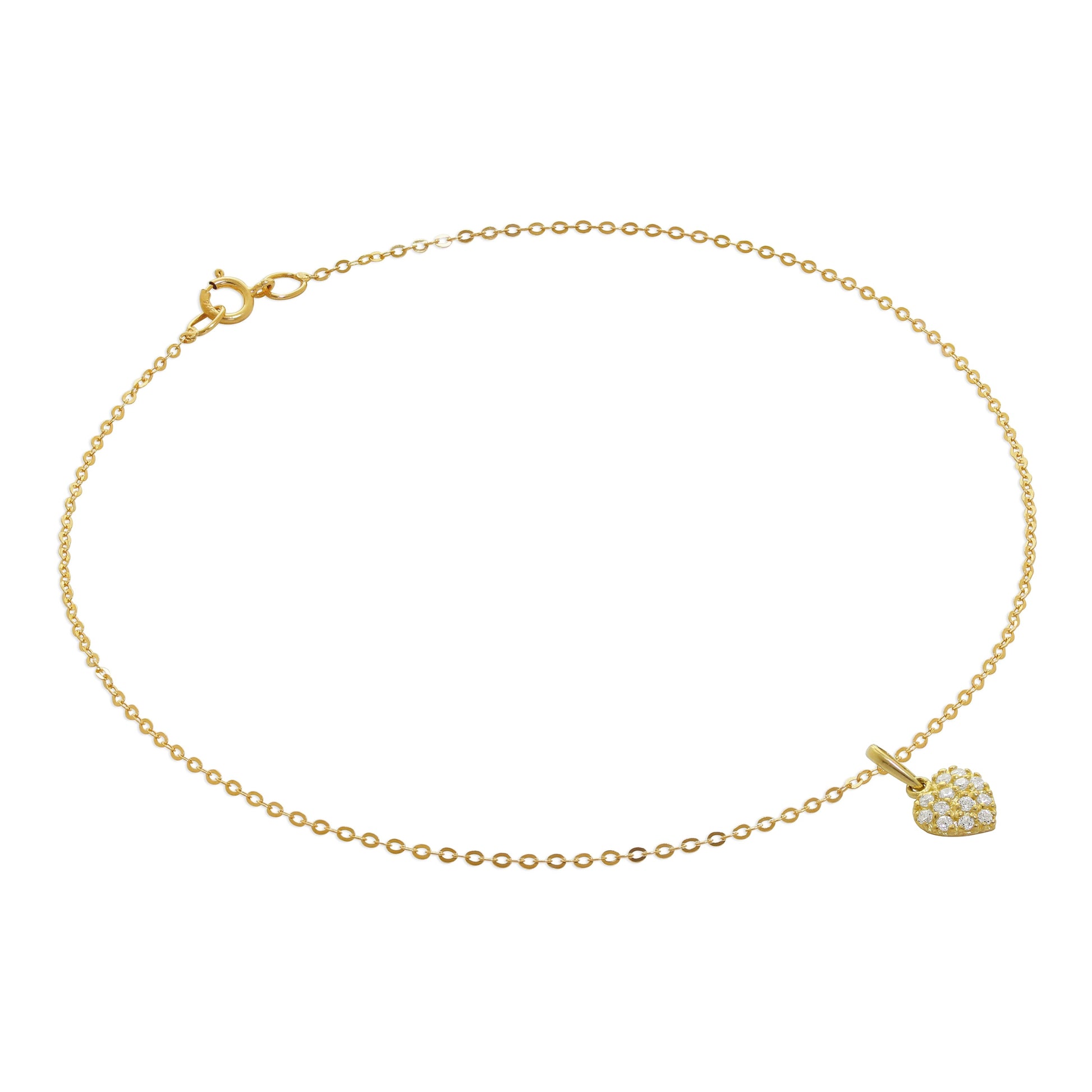 9 Karat Gold Gehämmert Spuren Fußkette mit Flach CZ Herz Anhänger - 24cm