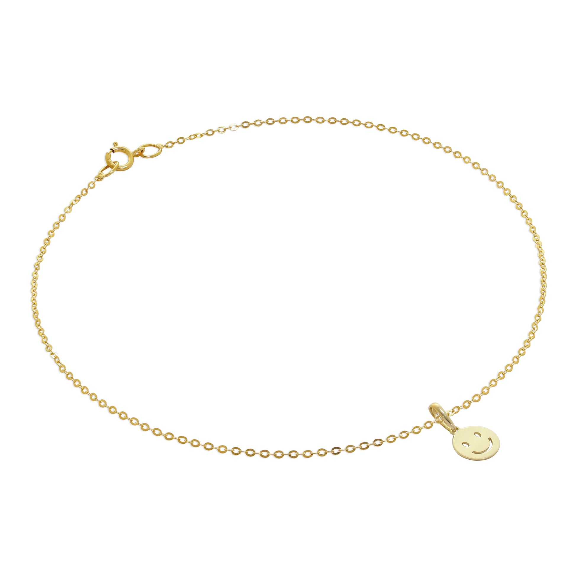 9 Karat Gold Gehämmert Spuren Fußkette mit Lächelndem Gesicht Emotikon Anhänger - 24cm