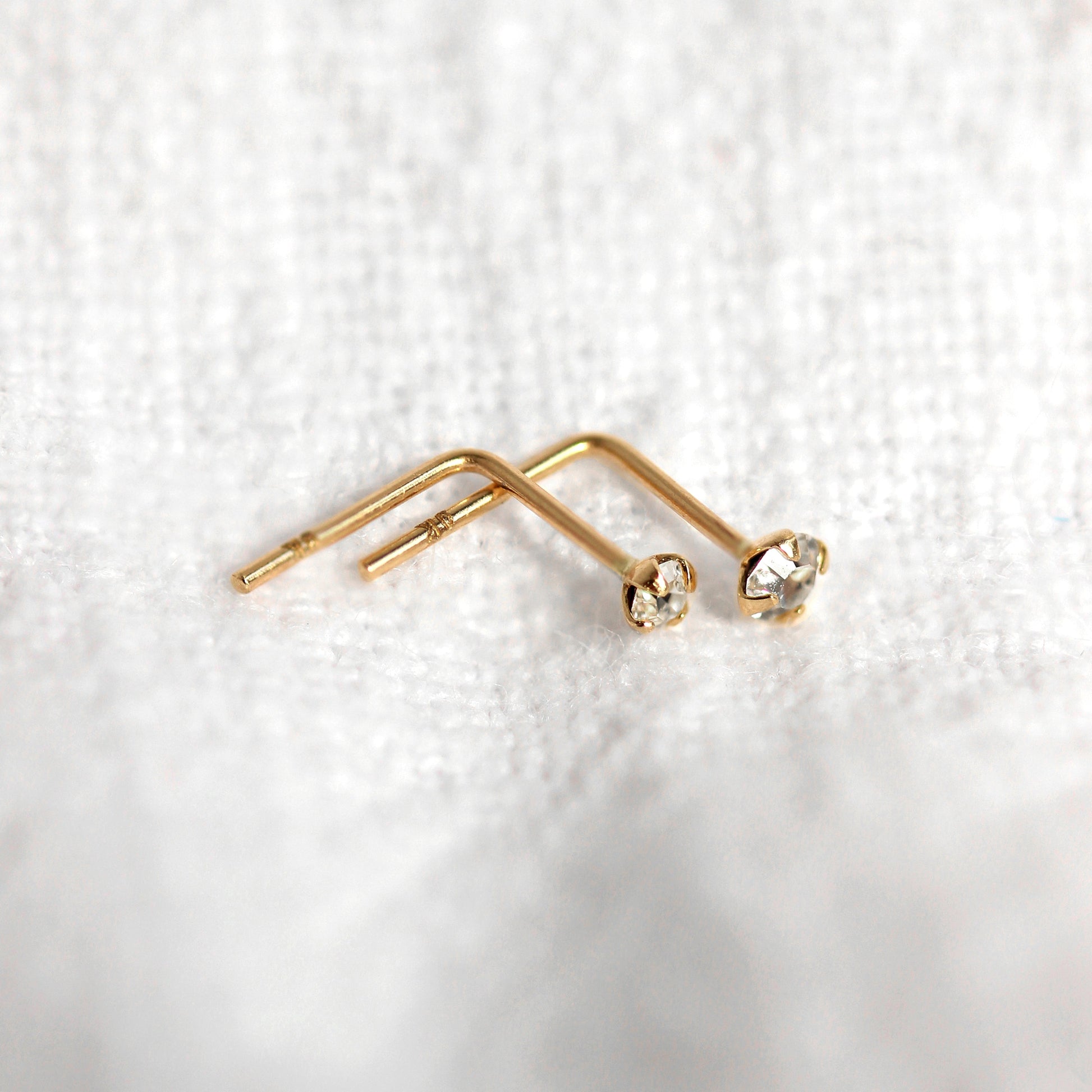 9ct Gold L-förmiger Kristall Nasenstecker 1,5mm - 2,5mm