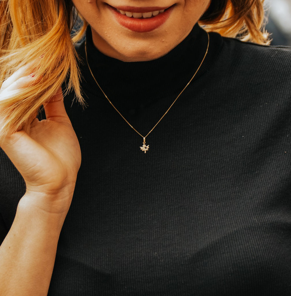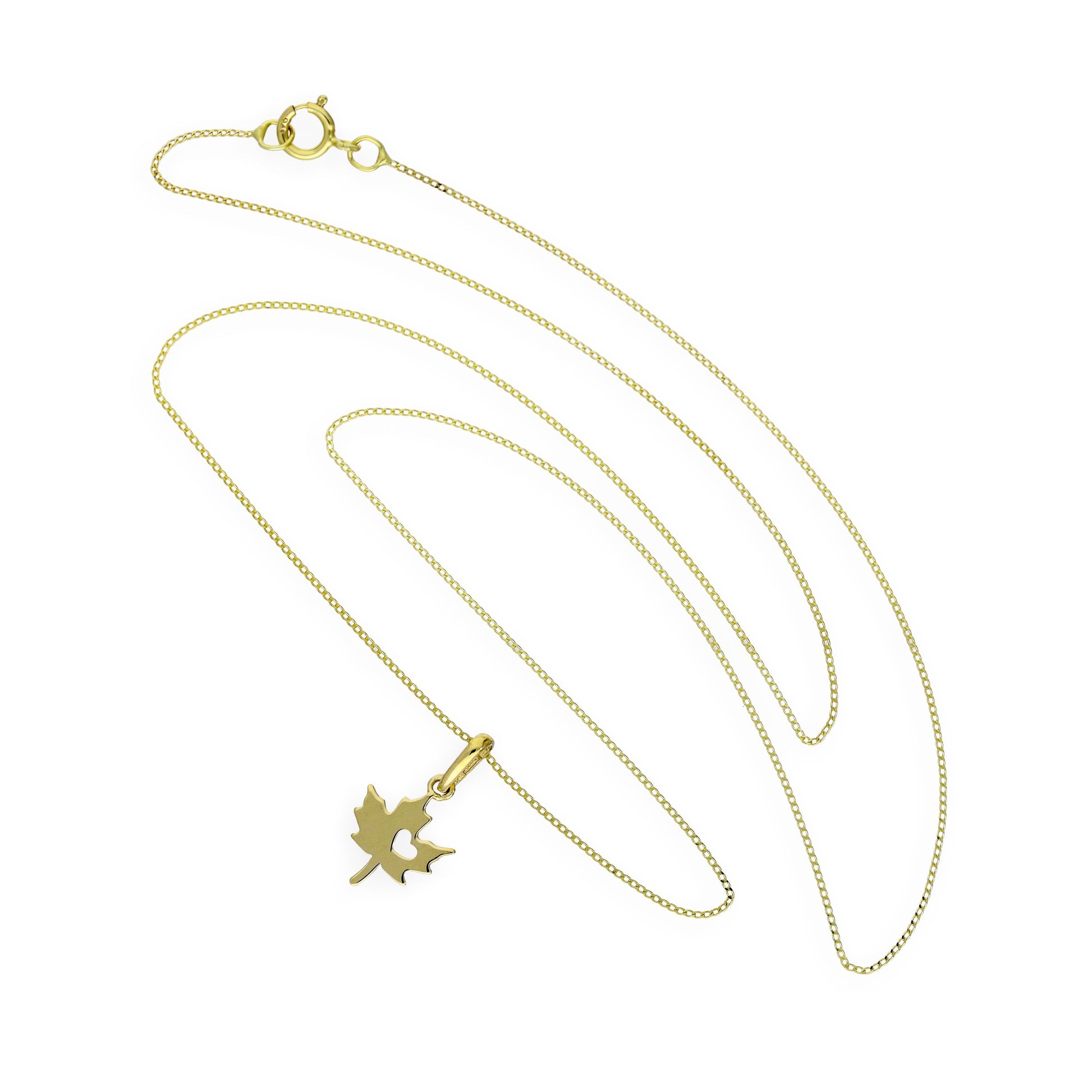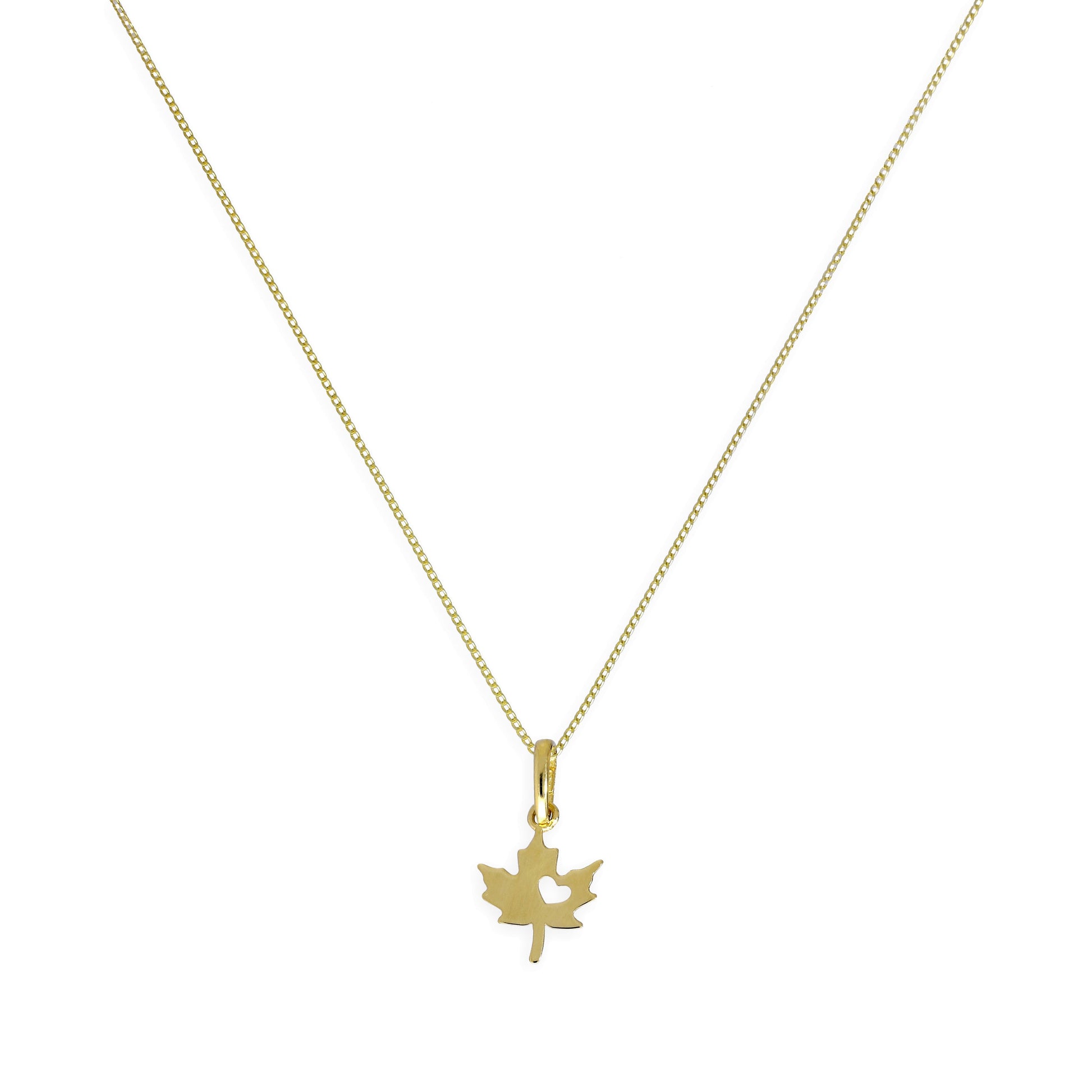 9 Karat Gold Halskette mit Blatt und ausgeschnittenem Herz – 16–20 Zoll