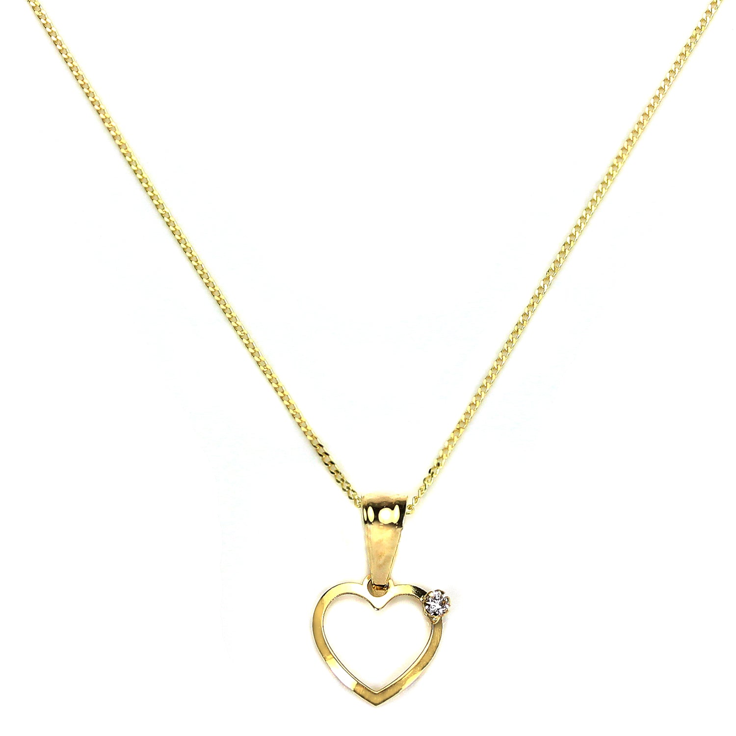 9 Karat Gold Leichtes offenes Herz mit Diamantanhänger