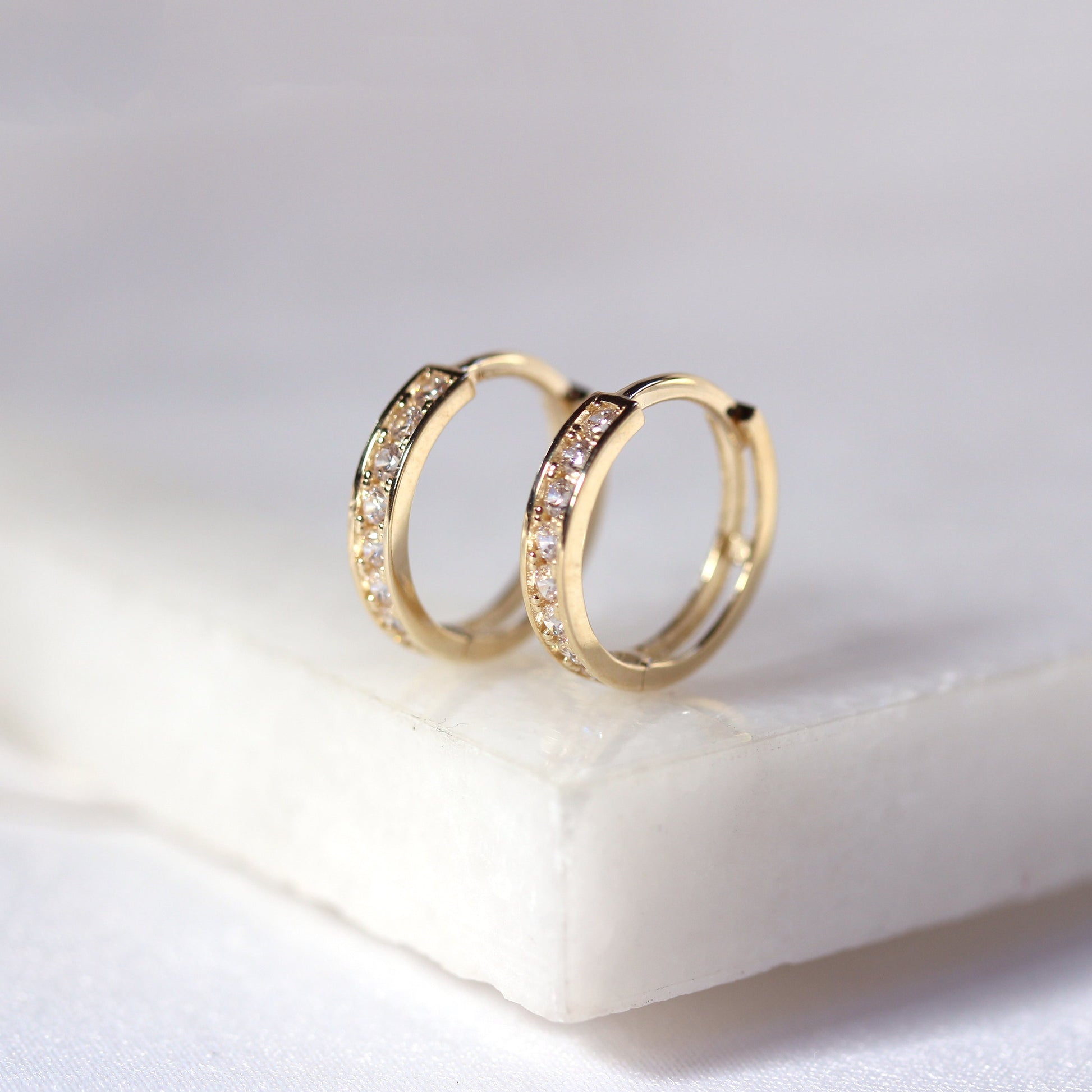 9 Karat Gold Pavé Fassung Satz CZ 12mm Klappcreolen Ohrringe
