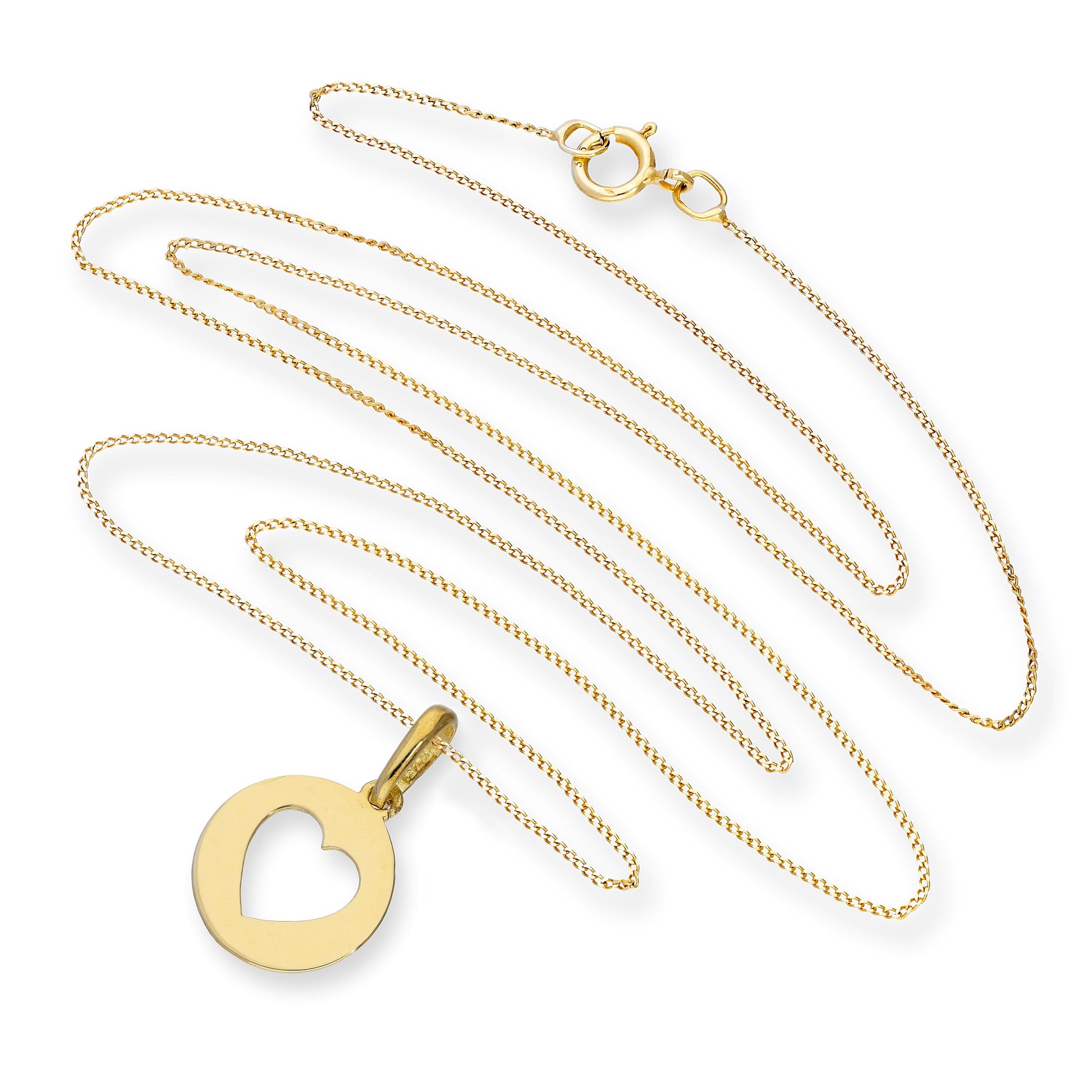 Runder Anhänger aus 9 Karat Gold mit ausgeschnittenem Herz an einer Kette
