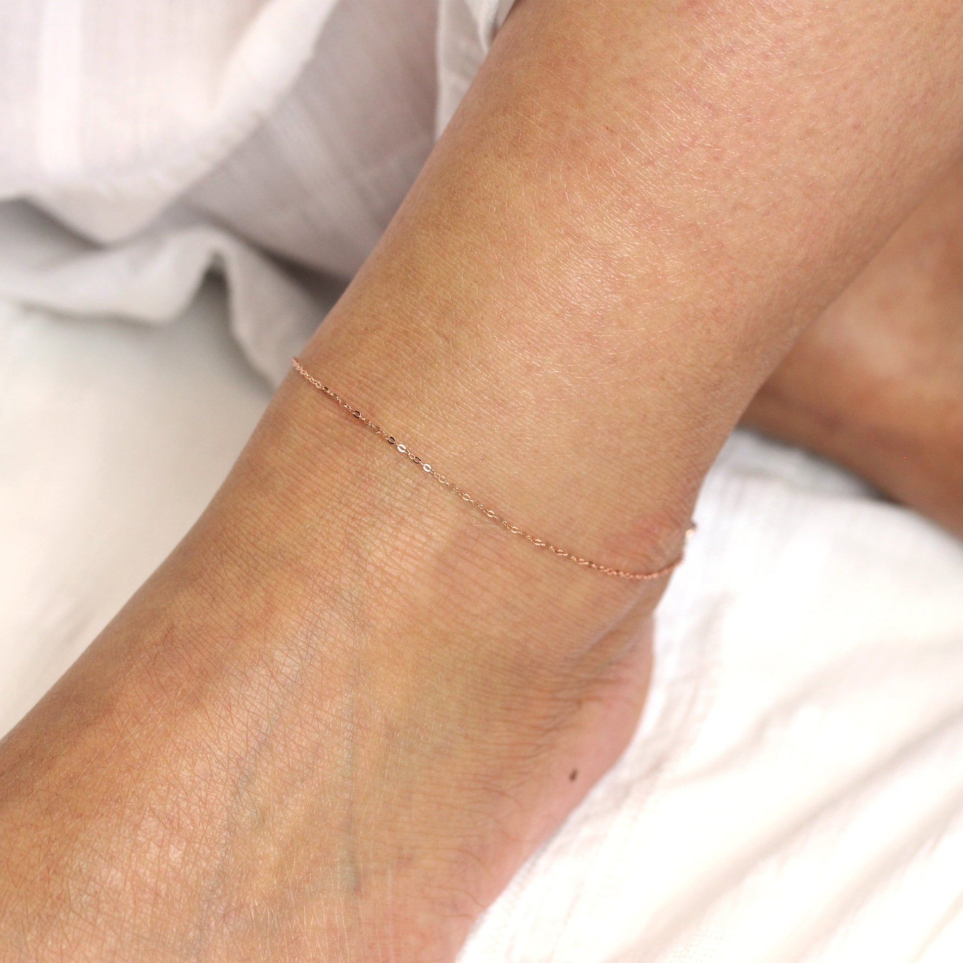 9 Karat Roségold Gehämmert Spuren Fußkette 24cm