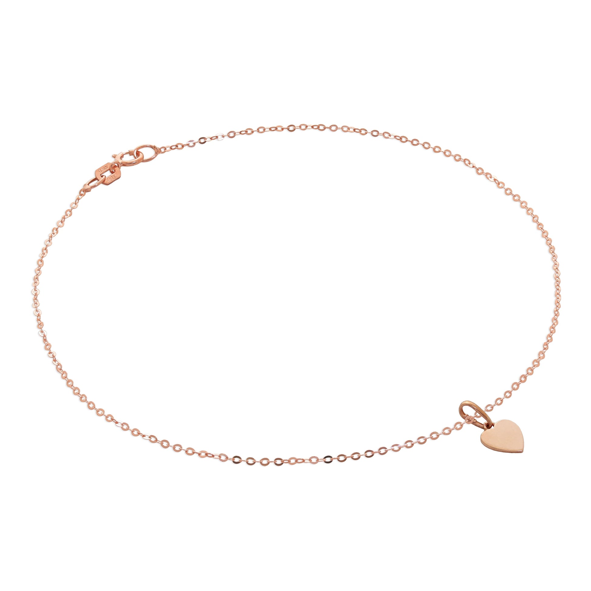9 Karat Roségold Gehämmert Spuren Fußkette mit Gravierbarem Herz Anhänger - 24cm
