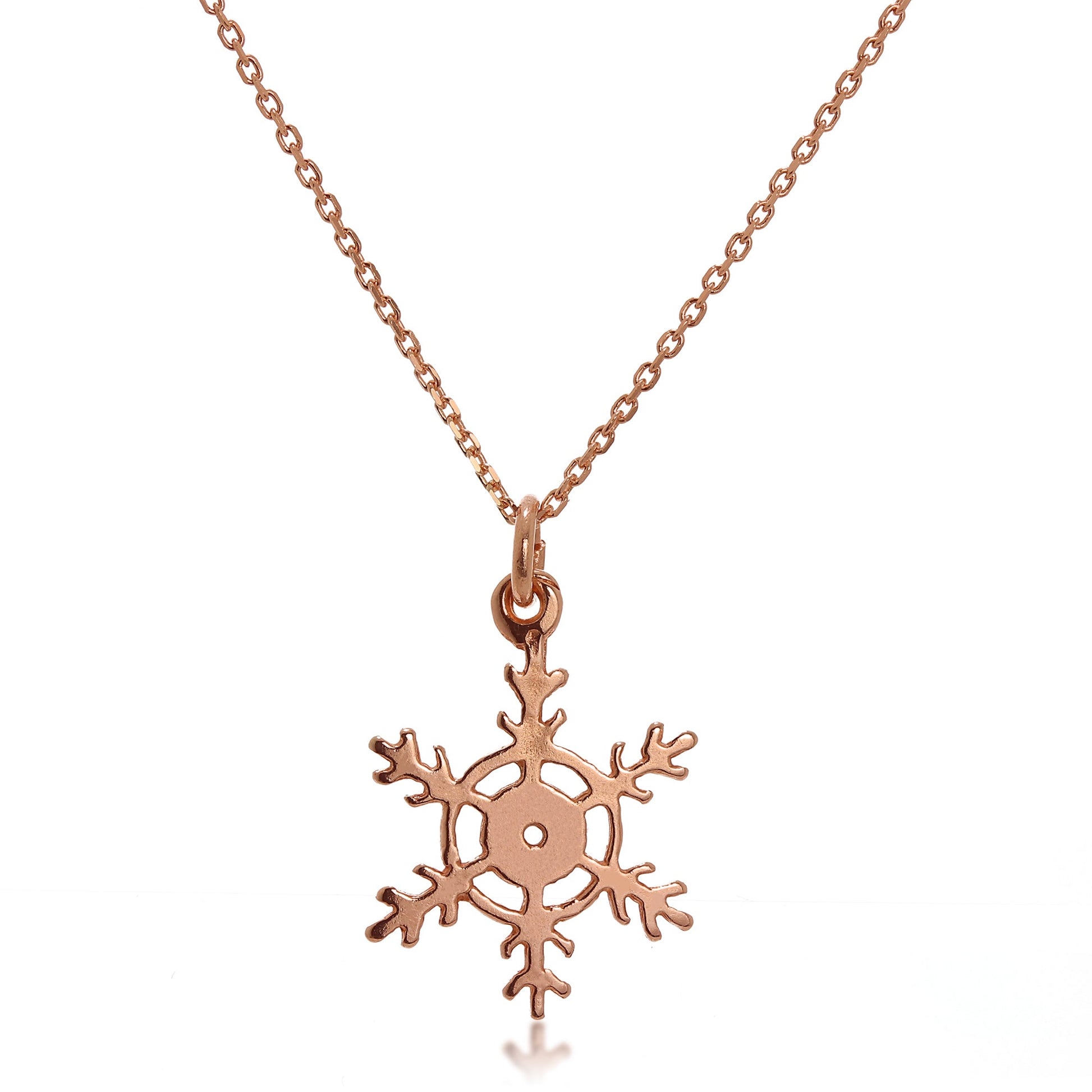 9 Karat Roségold Halskette mit Winter-Schneeflocke an Kette 16–20 Zoll