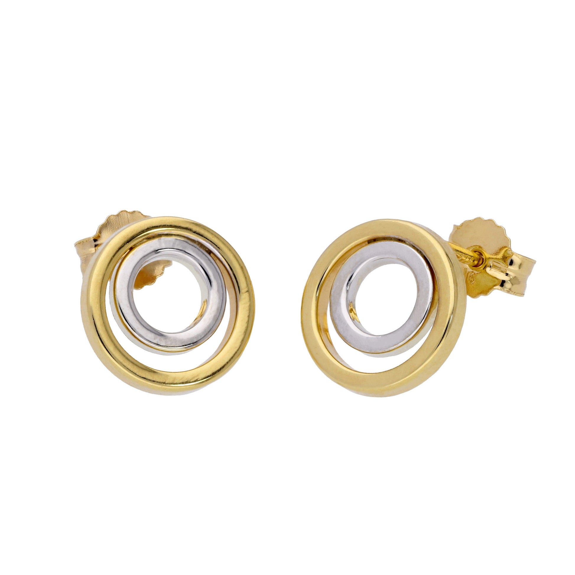 9 Karat Gold Zweiton Doppelkreis Ohrstecker