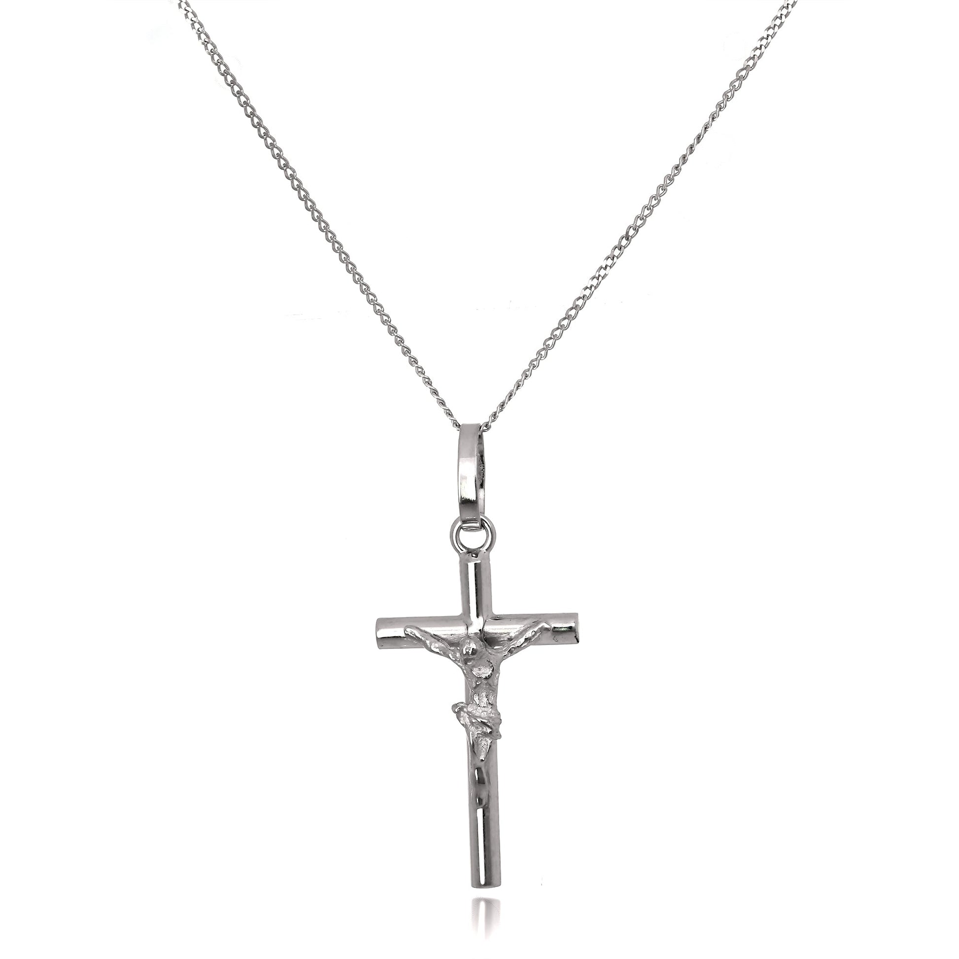 9 Karat Weißgold Kruzifix Anhänger an 40,5 - 51cm Kette
