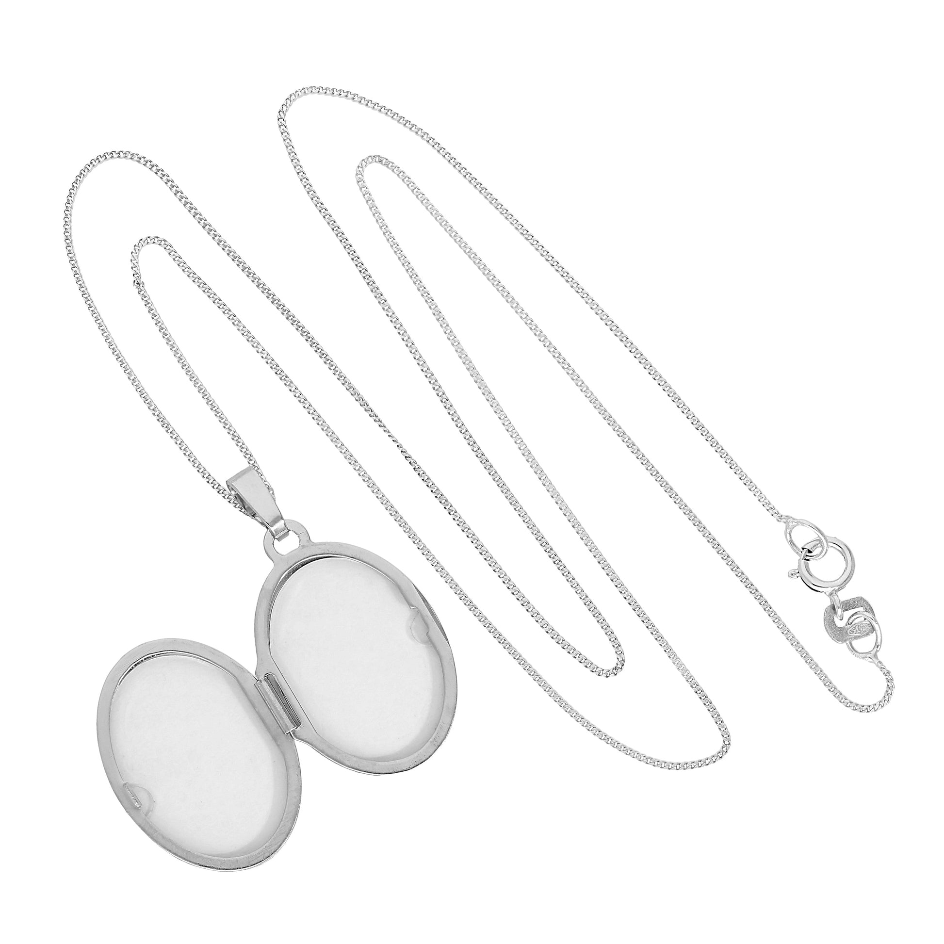 9 Karat Weißgold gravierbares ovales Medaillon mit wellenförmigem Design an Kette 16 - 18 Zoll