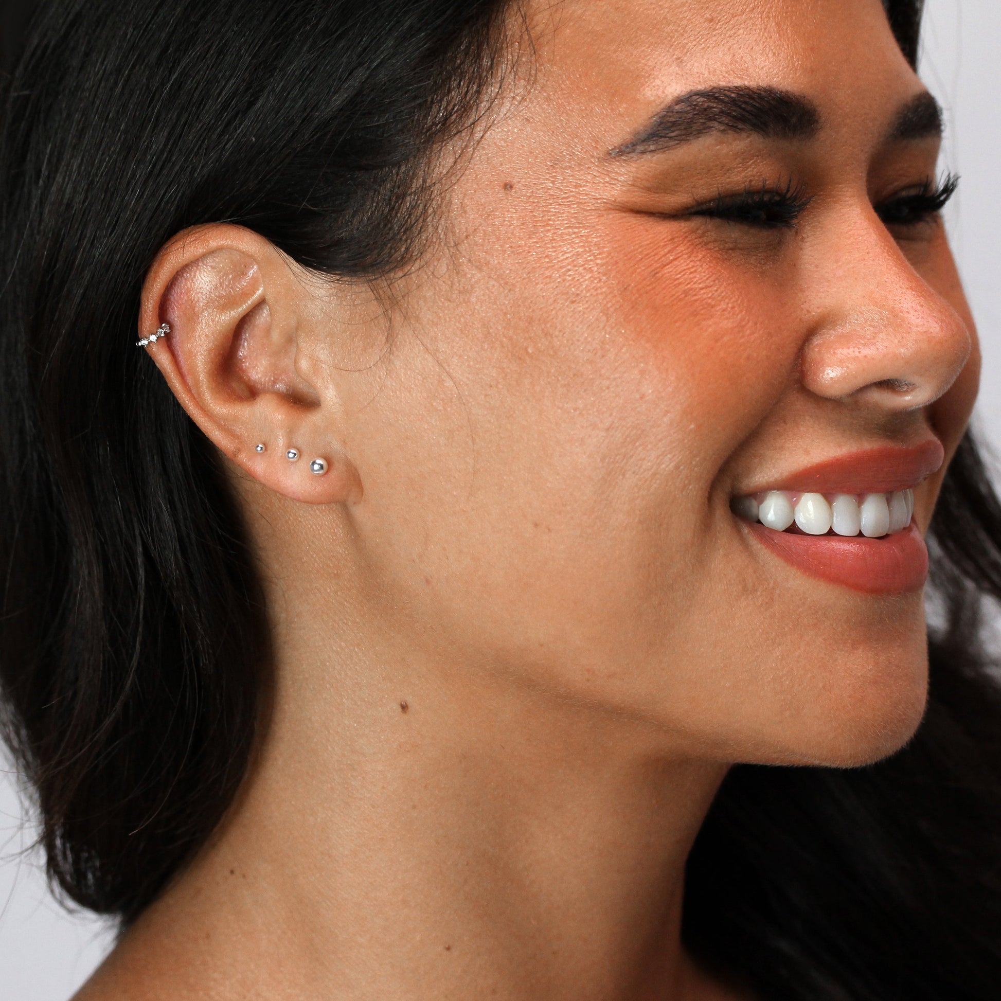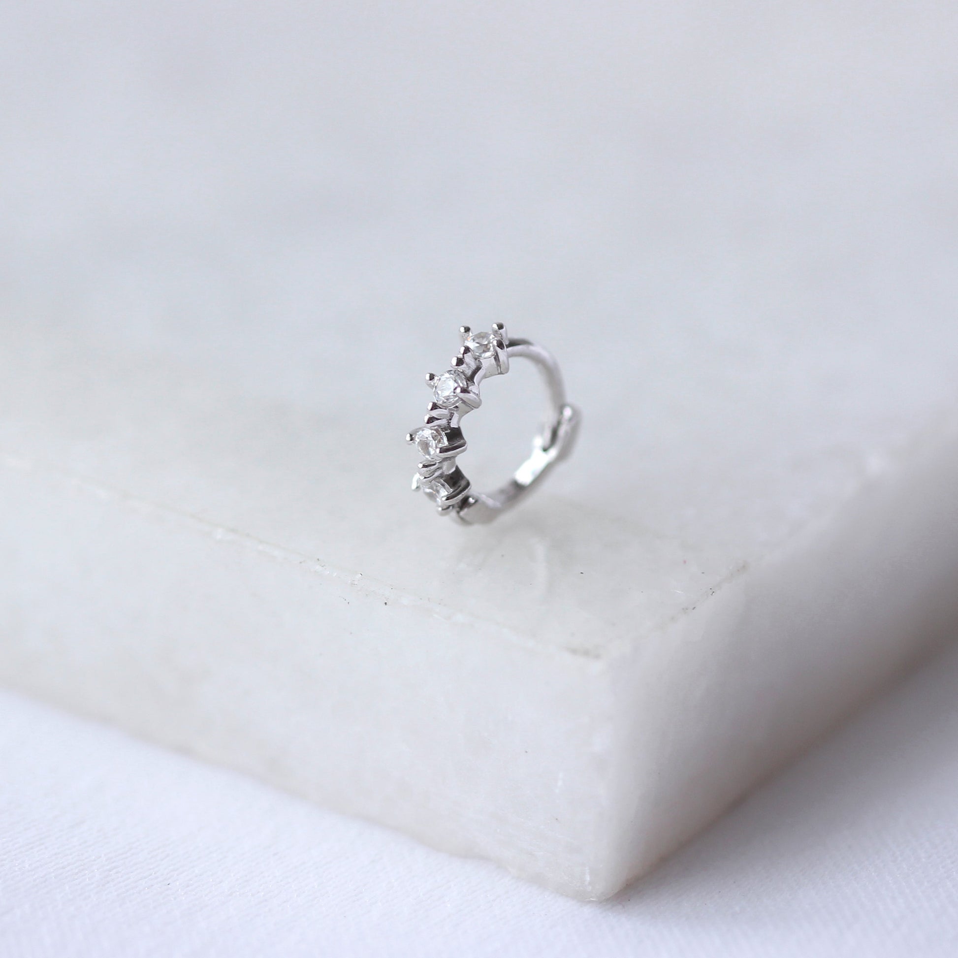 9 Karat Weißgold Winzig Krallen Fassung CZ 7mm Helix Creolen 26Ga Ring