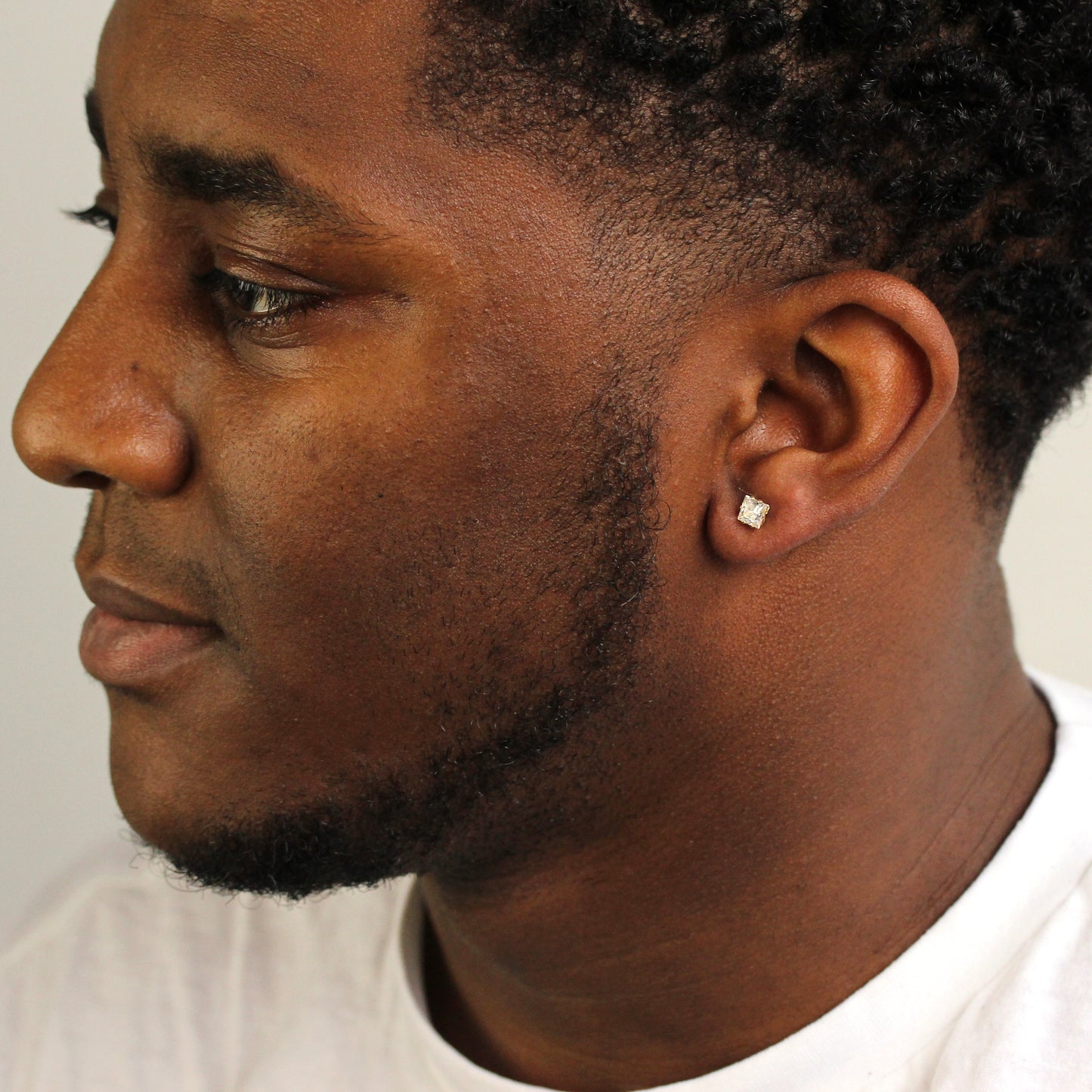 9 Karat Gelbgold Klar CZ 5mm Quadrat Herren Einzel Ohrstecker