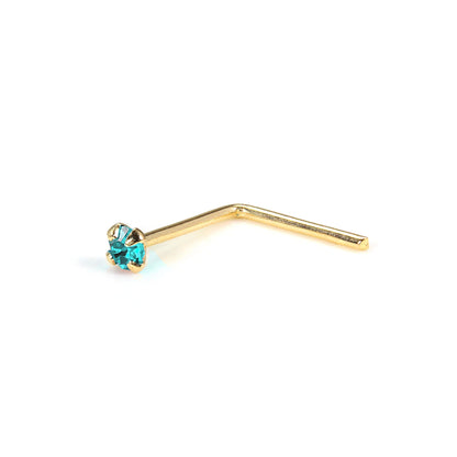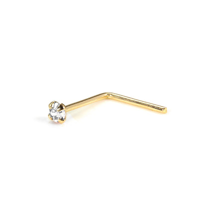 L-förmiger 1,5 mm runder CZ-Kristall Nasenstecker aus 9ct Gelbgold