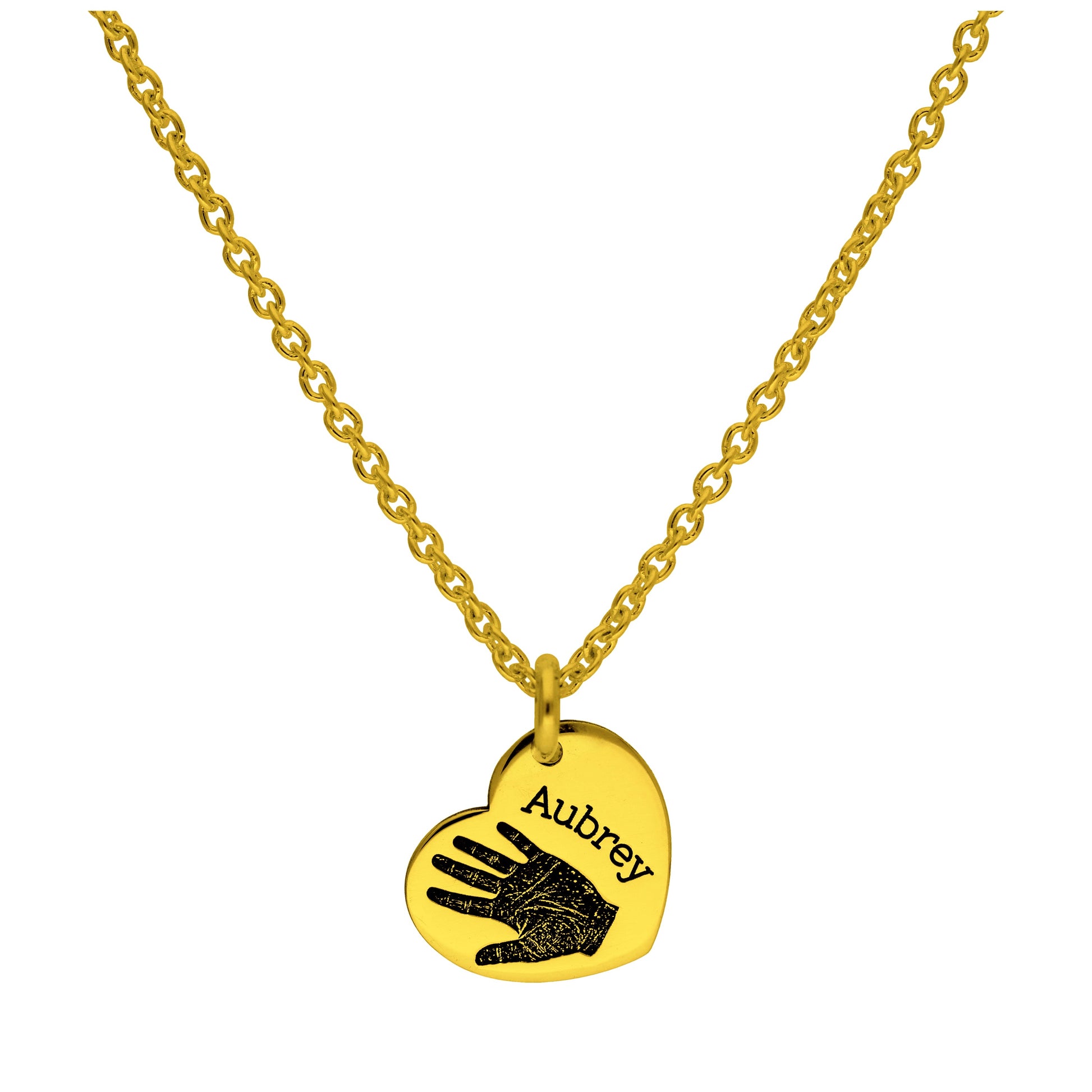 Maßgefertigte vergoldete Sterling-Silber-Halskette mit Handabdruck und Herz und Namen 16–24 Zoll