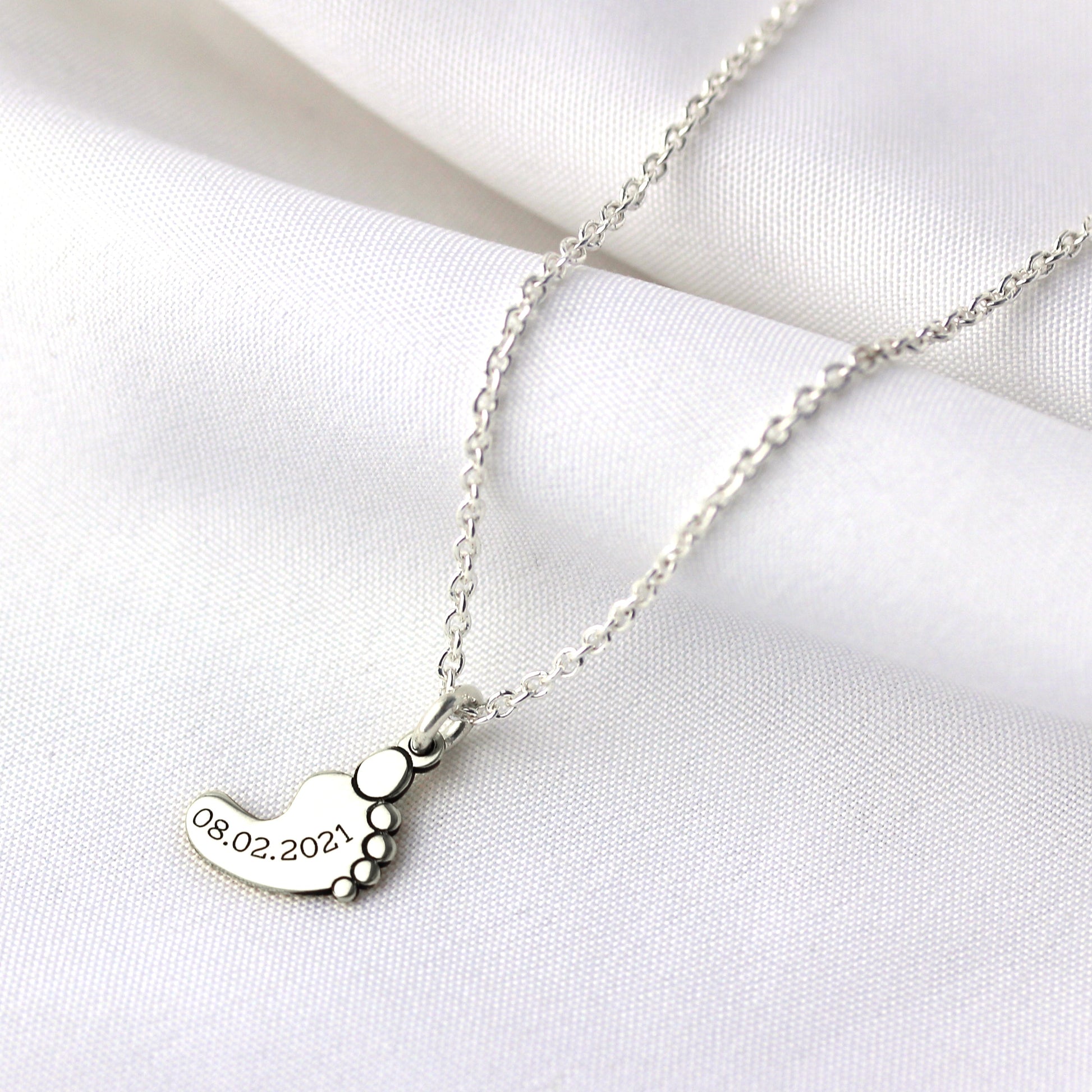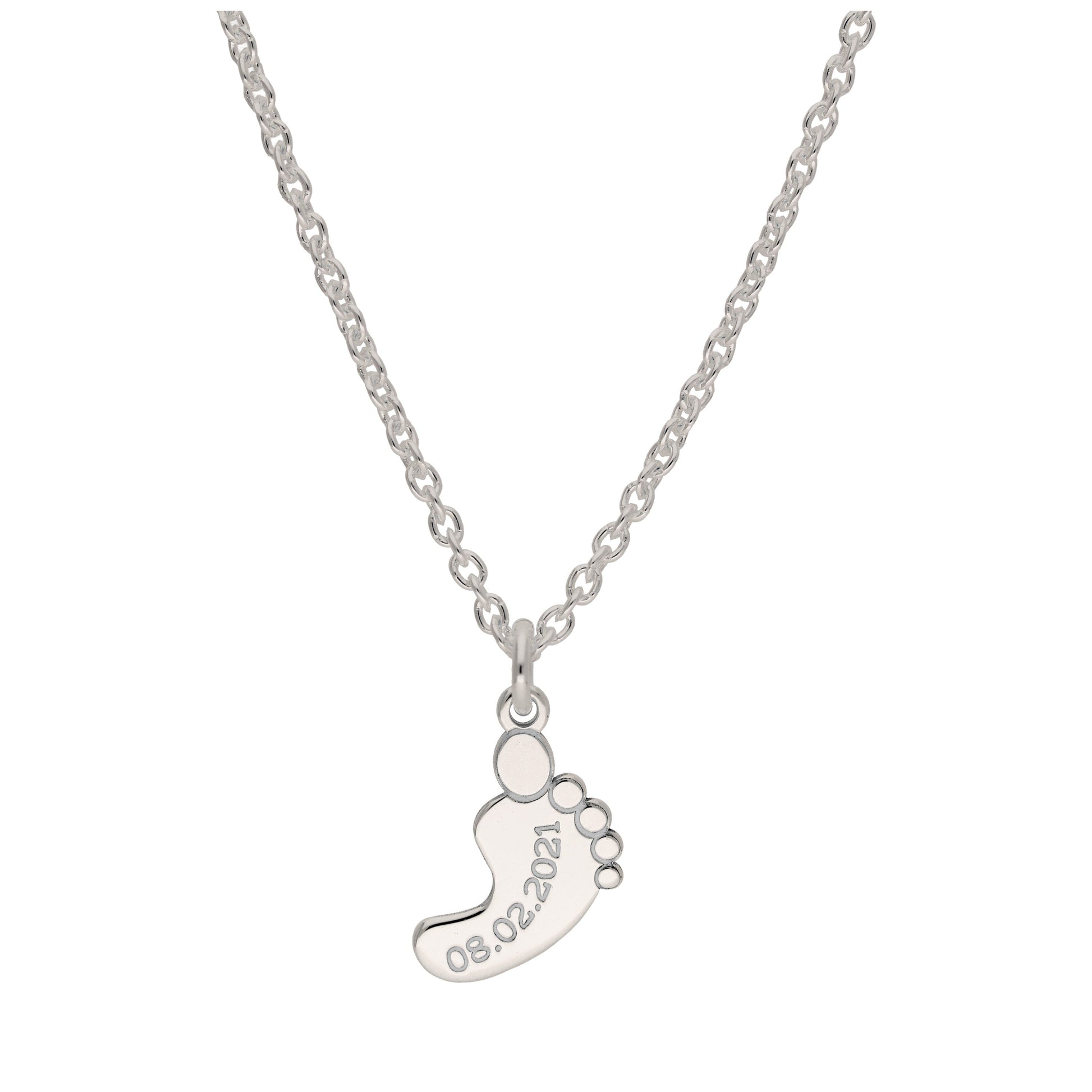 Maßgefertigte Halskette aus Sterlingsilber mit Babyfuß und Namen, 16–24 Zoll