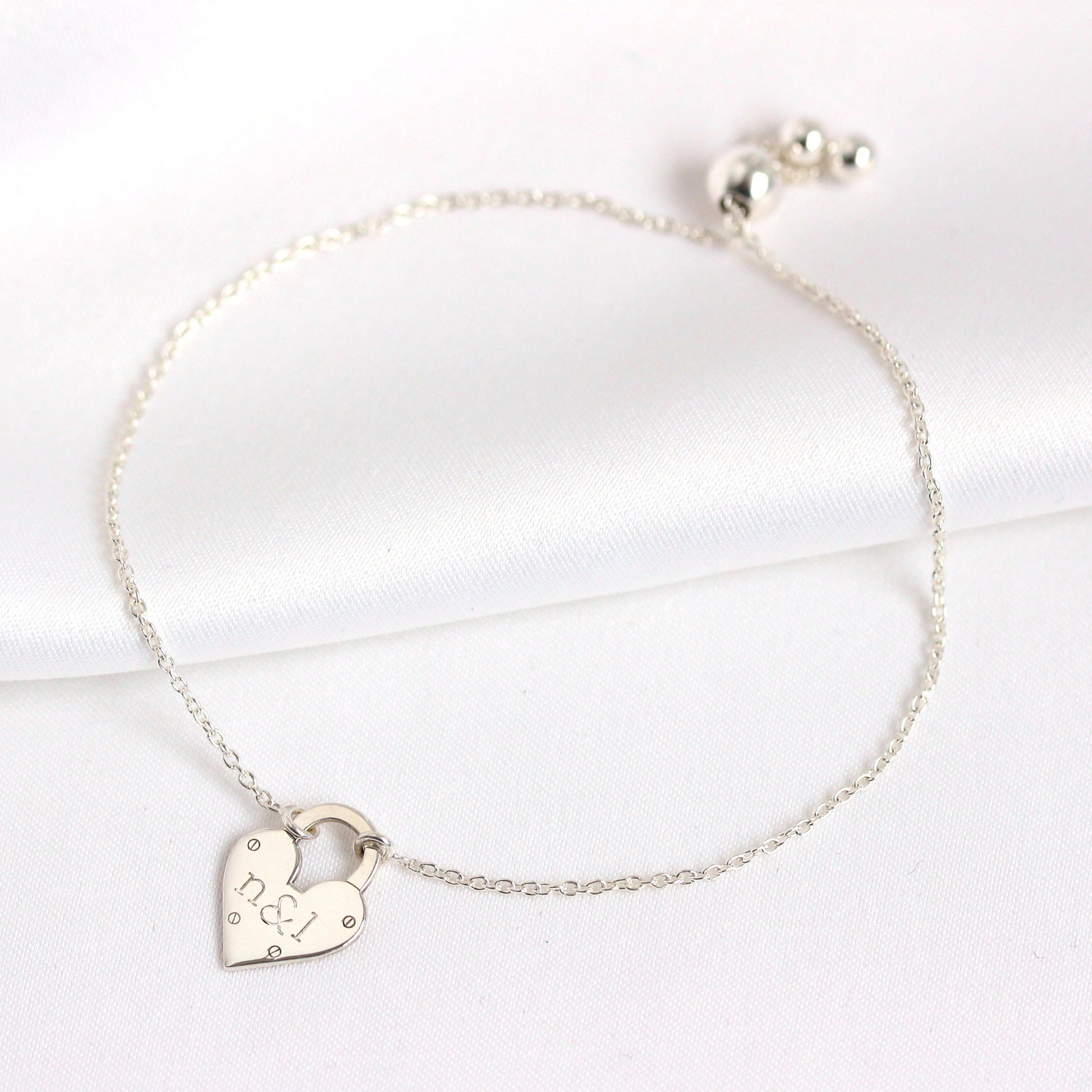 Maßgefertigt Sterlingsilber Initialen Vorhängeschloss Verstellbar Armband