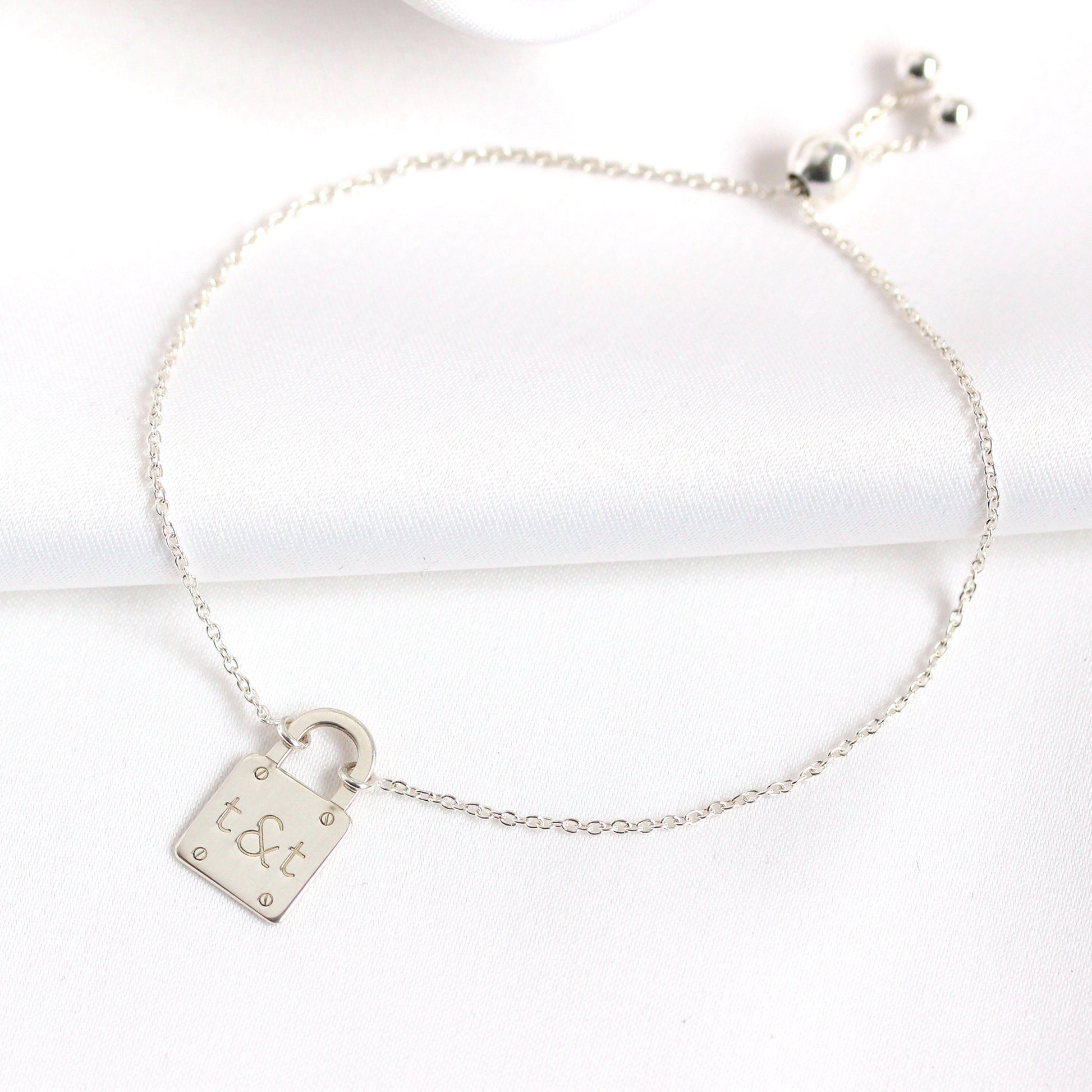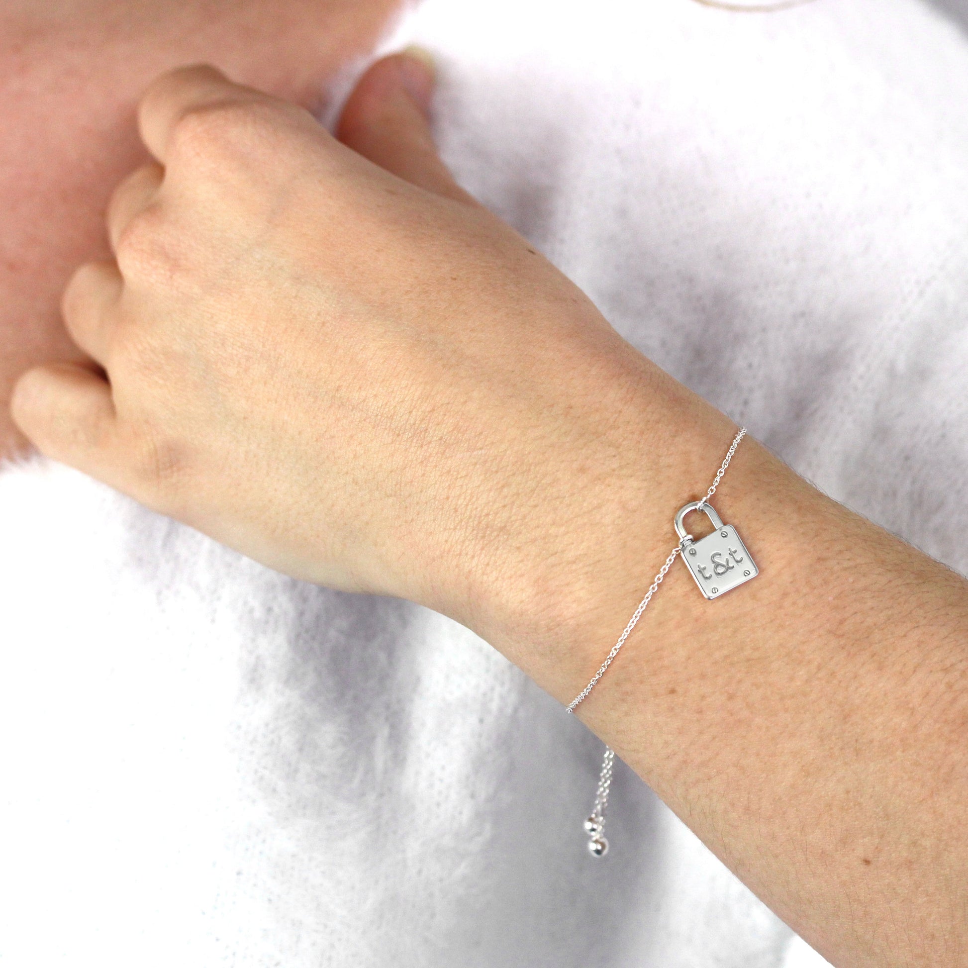 Maßgefertigt Sterlingsilber Initialen & Vorhängeschloss Armband