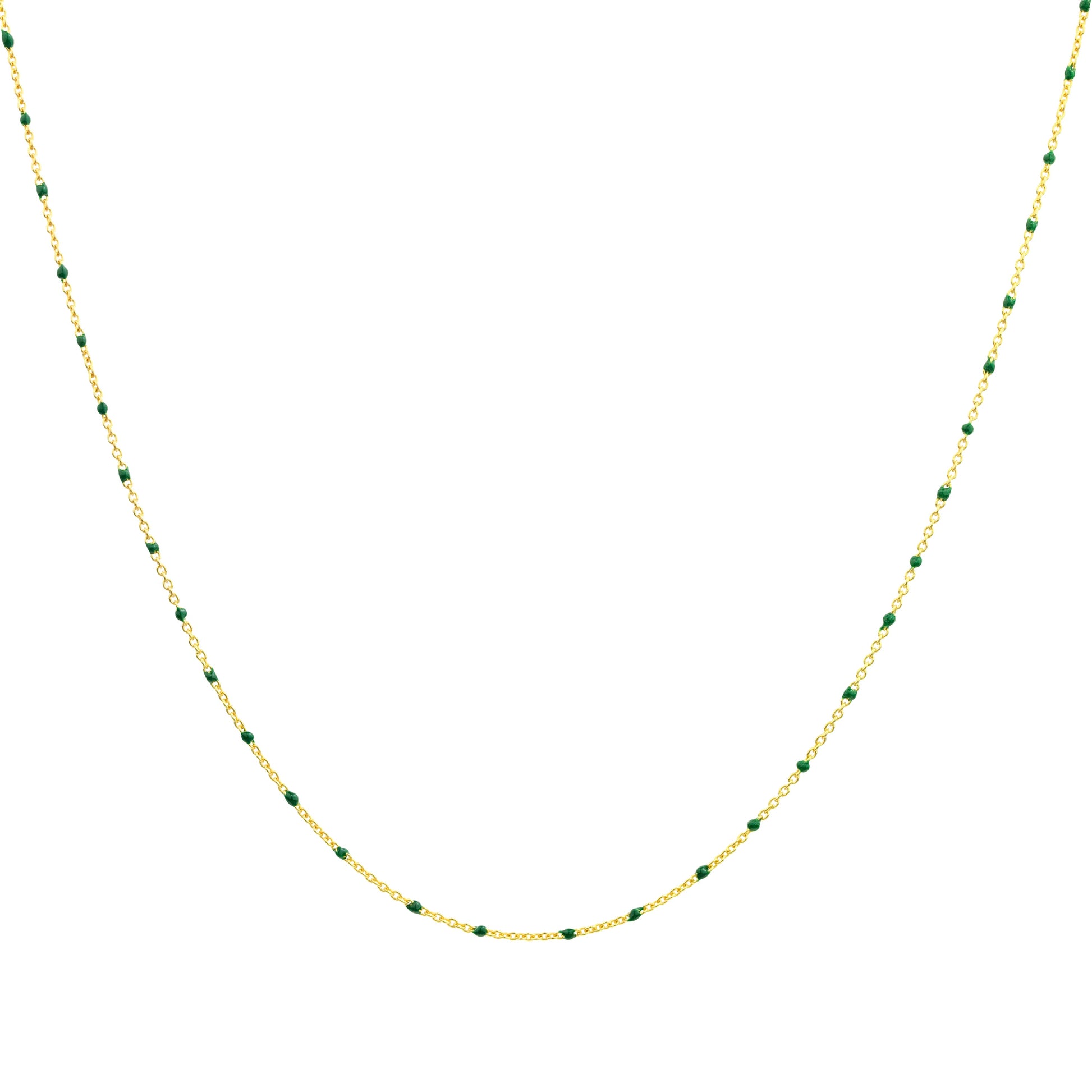 Fine Gold Plated Sterling Silver & Green Enamel Confetti Chain Necklace - 16 Inches