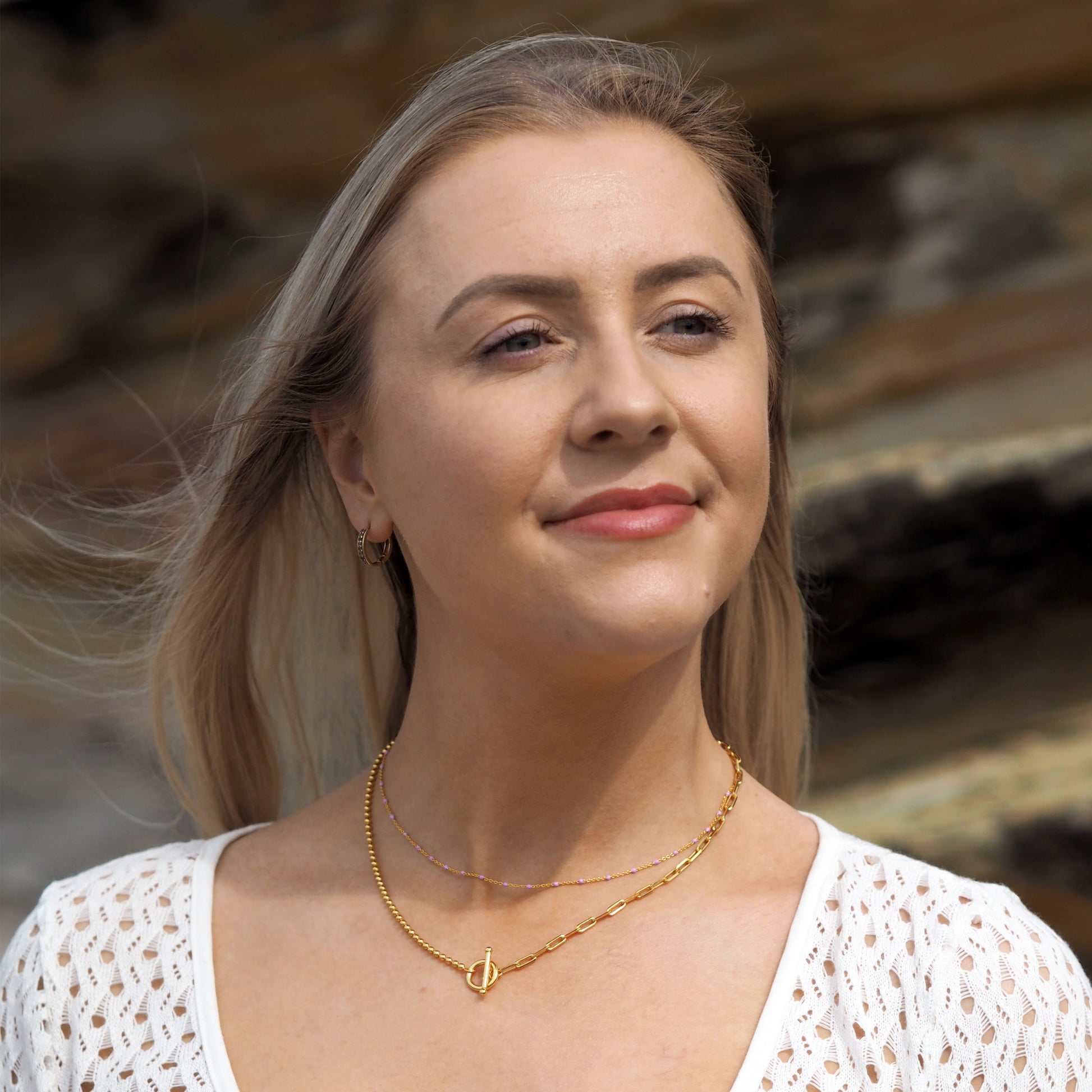Fine Gold Plated Sterling Silver & Purple Enamel Confetti Chain Necklace - 16 Inches