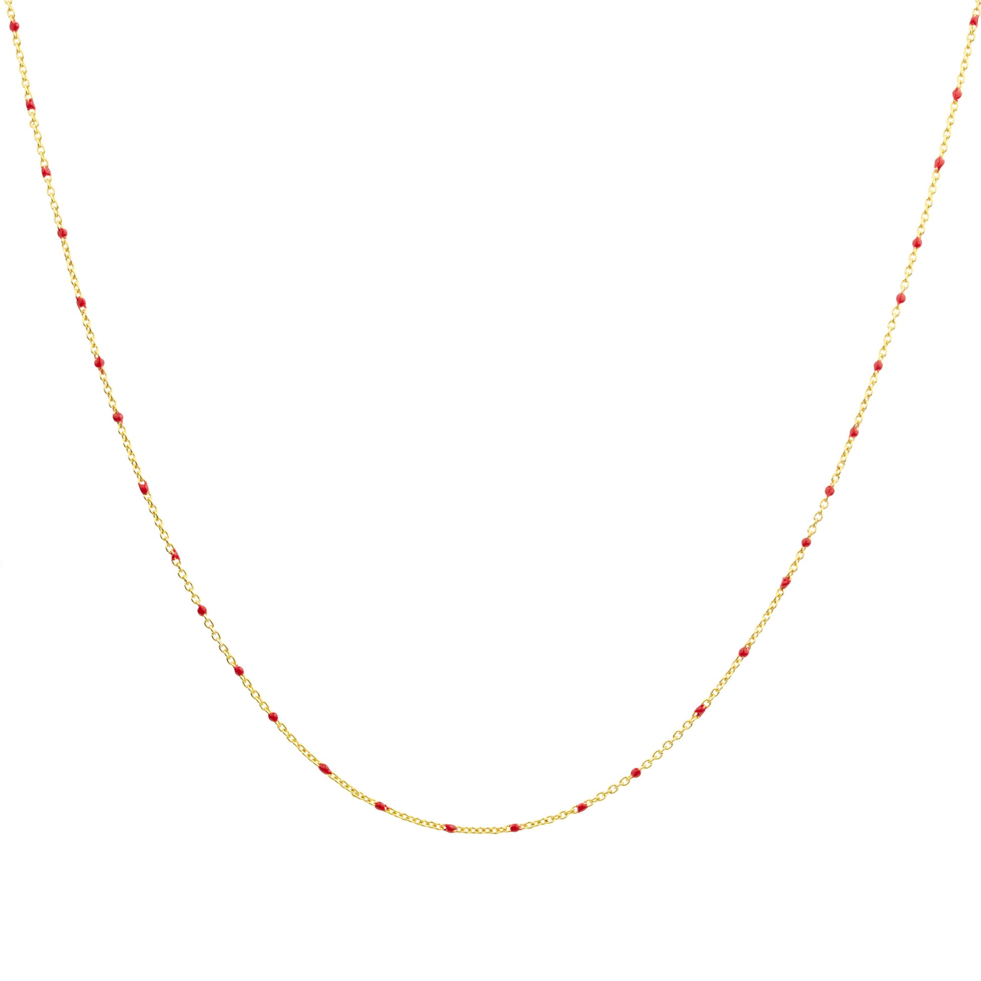 Fine Gold Plated Sterling Silver & Red Enamel Confetti Chain Necklace - 16 Inches