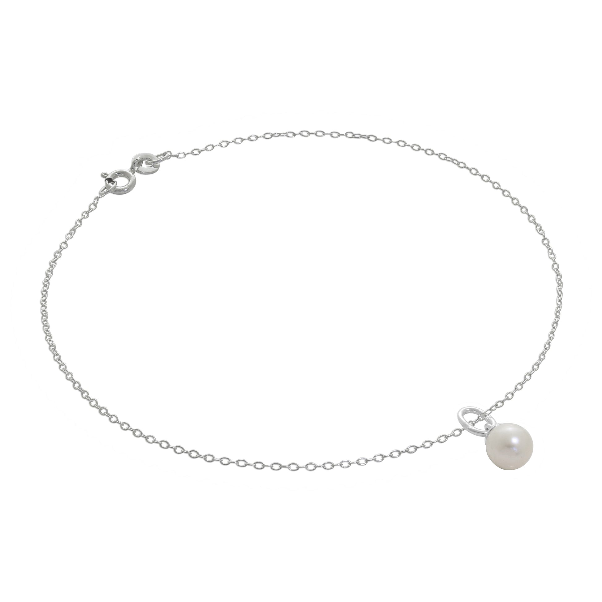 Fein Sterlingsilber Belcher Fußkette mit Perle Anhänger - 25,5cm