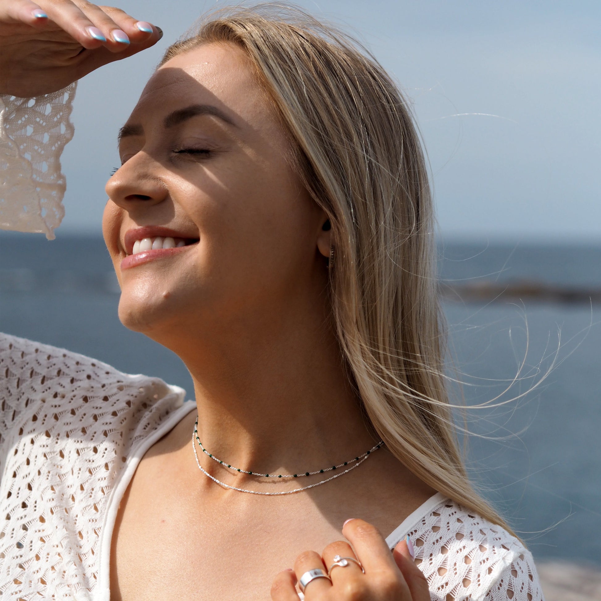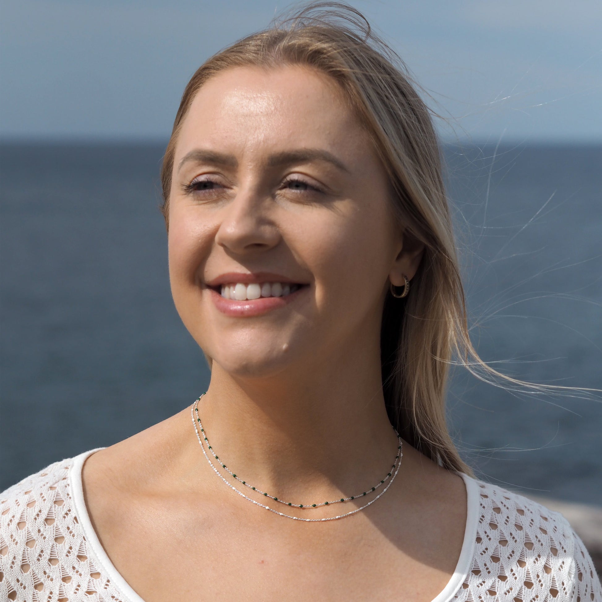 Fine Sterling Silver & Green Enamel Confetti Chain Necklace - 16 Inches
